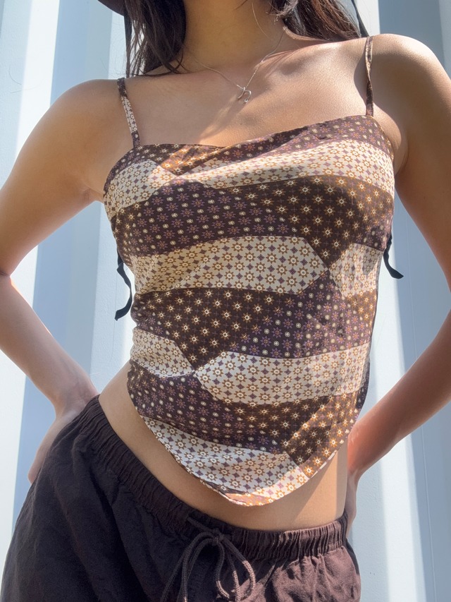 オレンジとブラウンがカワイイキャミソール❤️ 丈も少し長めでゆったりと着れます〜 なんと、紐の先はお花になってるの〜!!カワイイポイントですよねっ