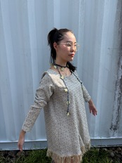 フリンジや裾のカットが可愛いですよね!、スクエアネックには遊び心たっぷりのチョーカーなんて付けちゃって✨
