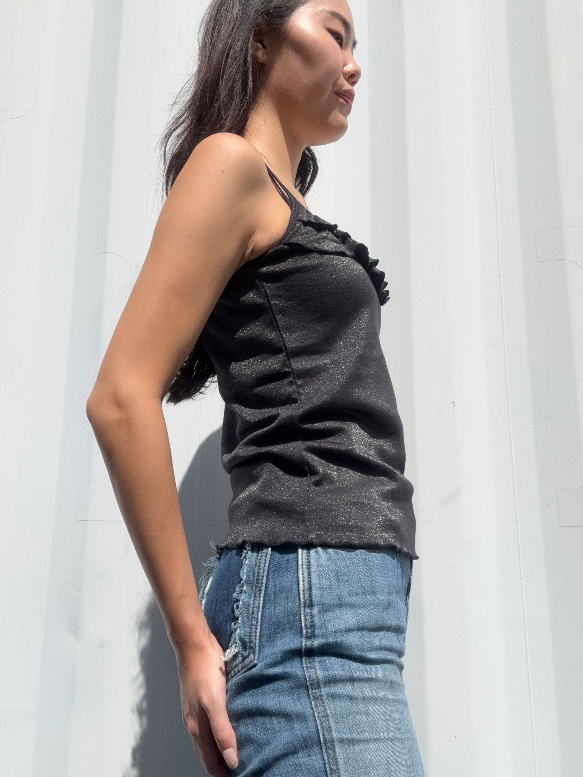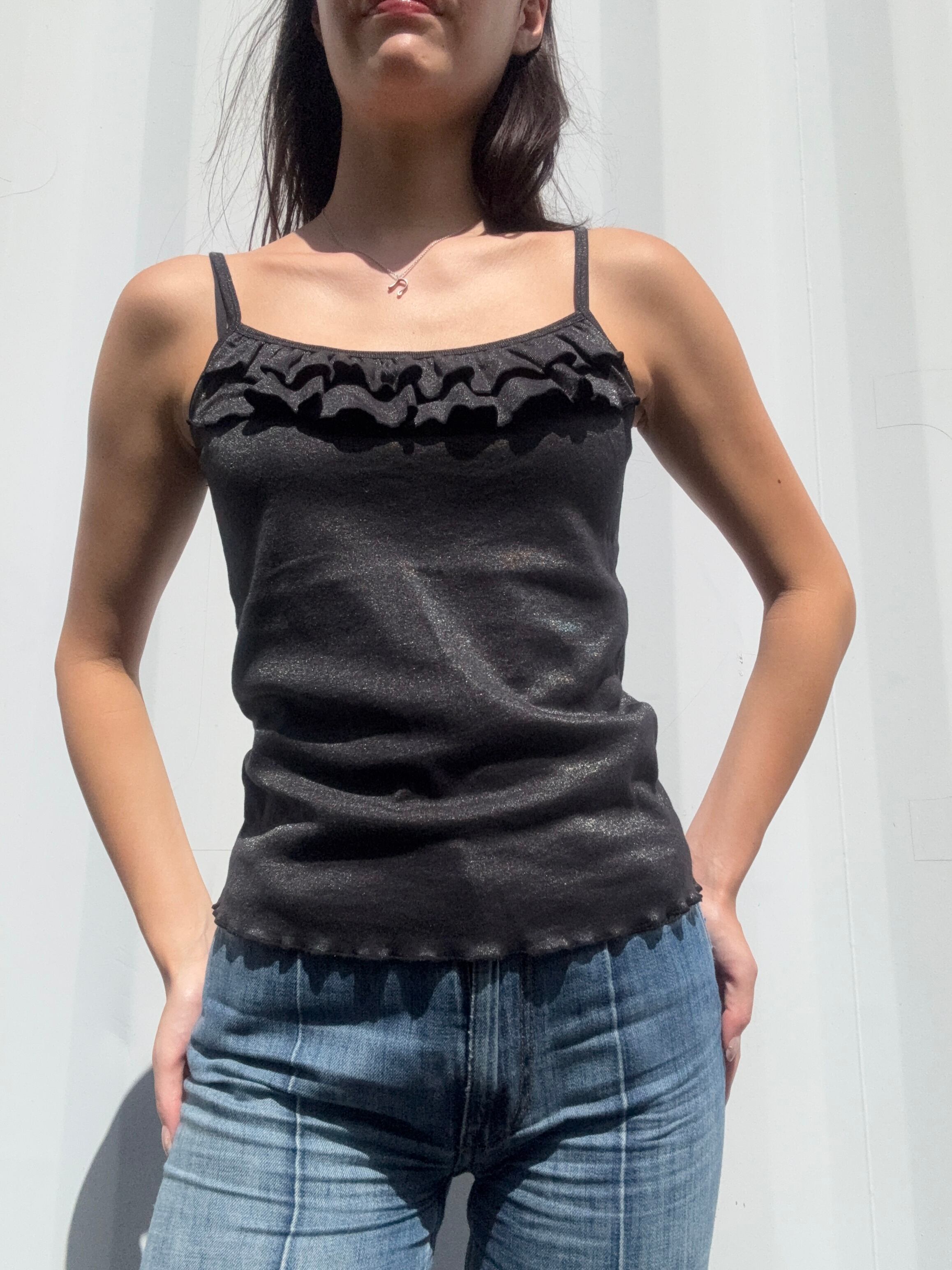 このキャミソールは、黒ベースなんだけど細かいラメが全体に散りばめられていてかわいいポイントがたくさんあります✨