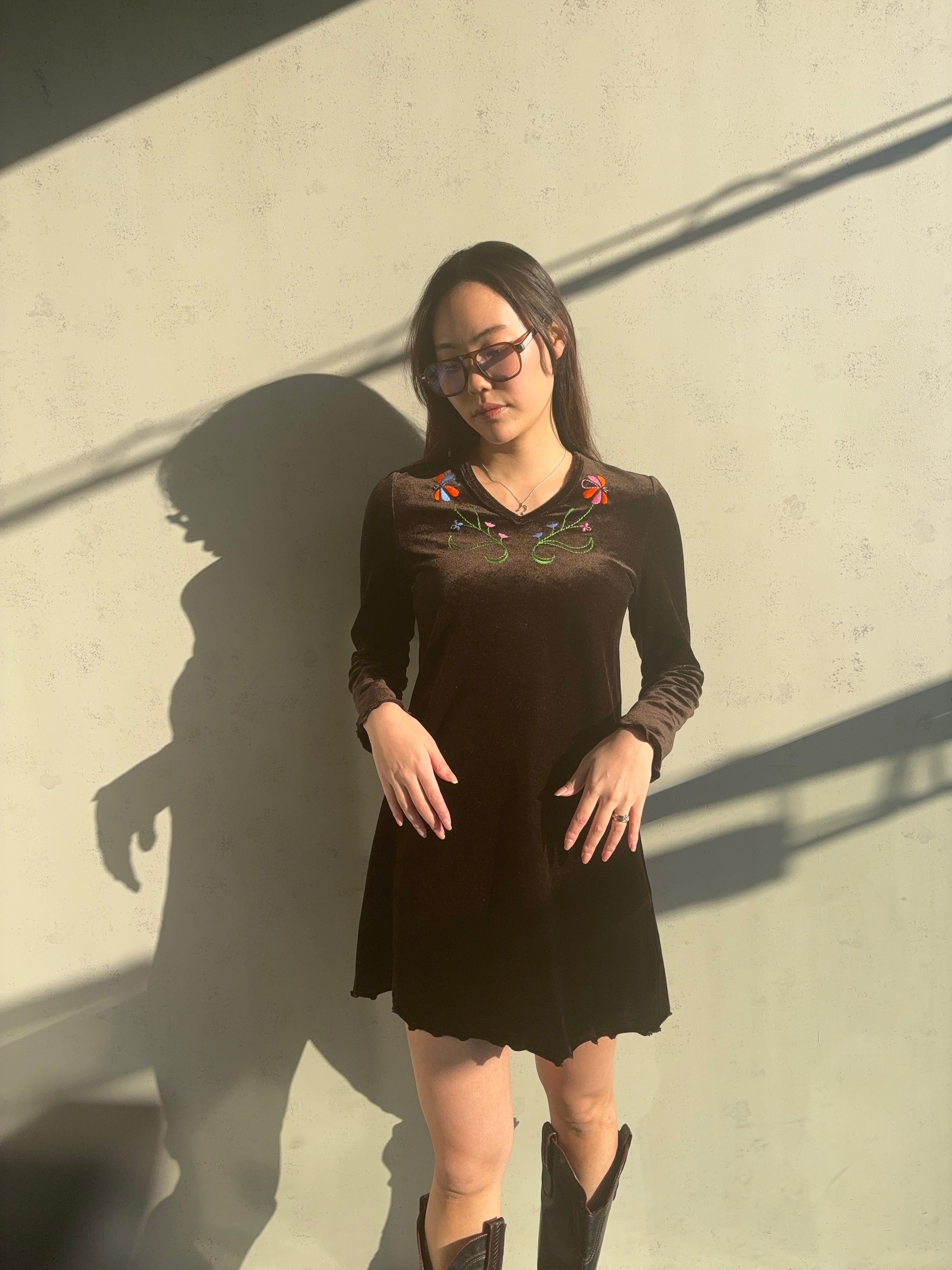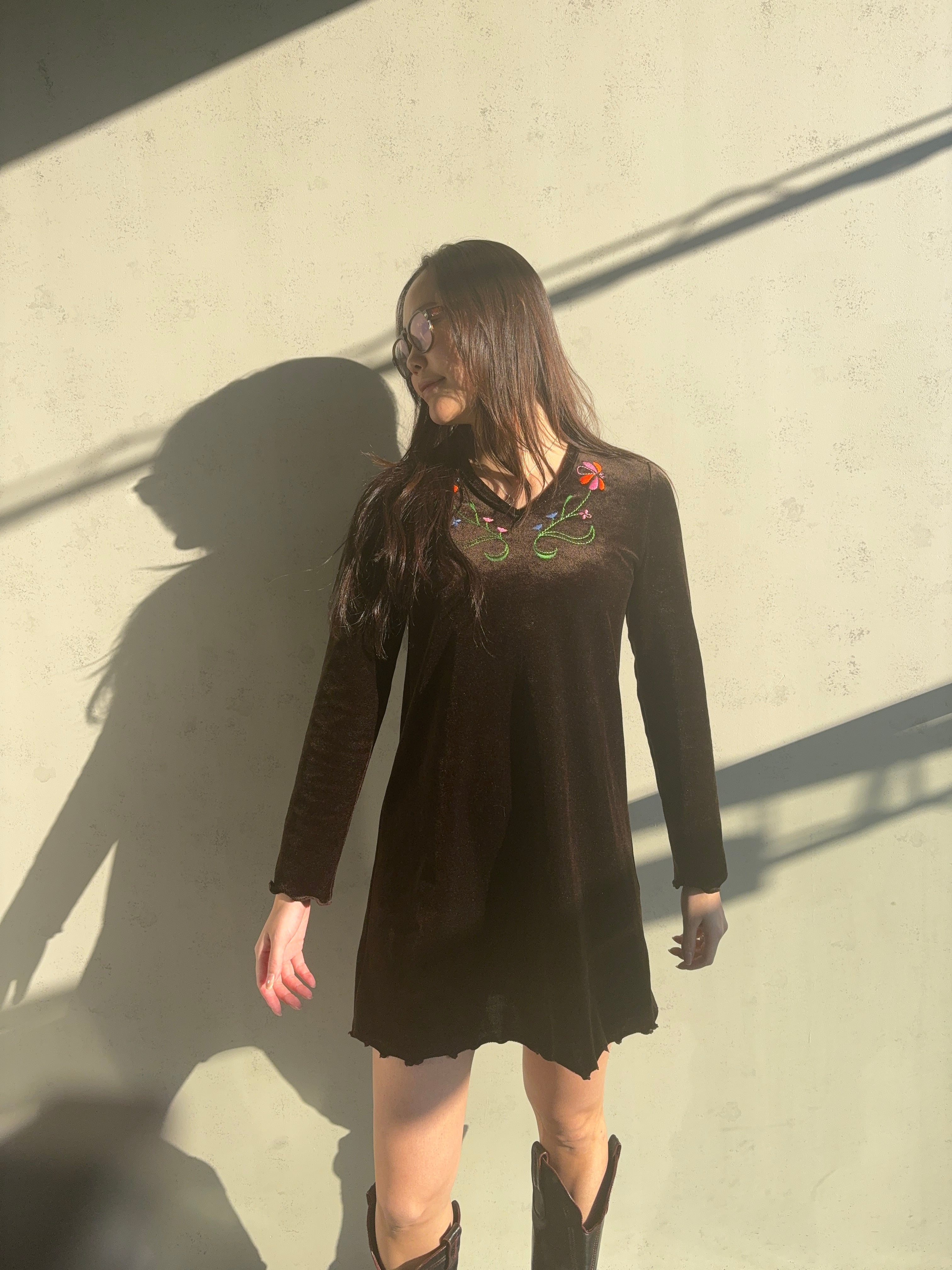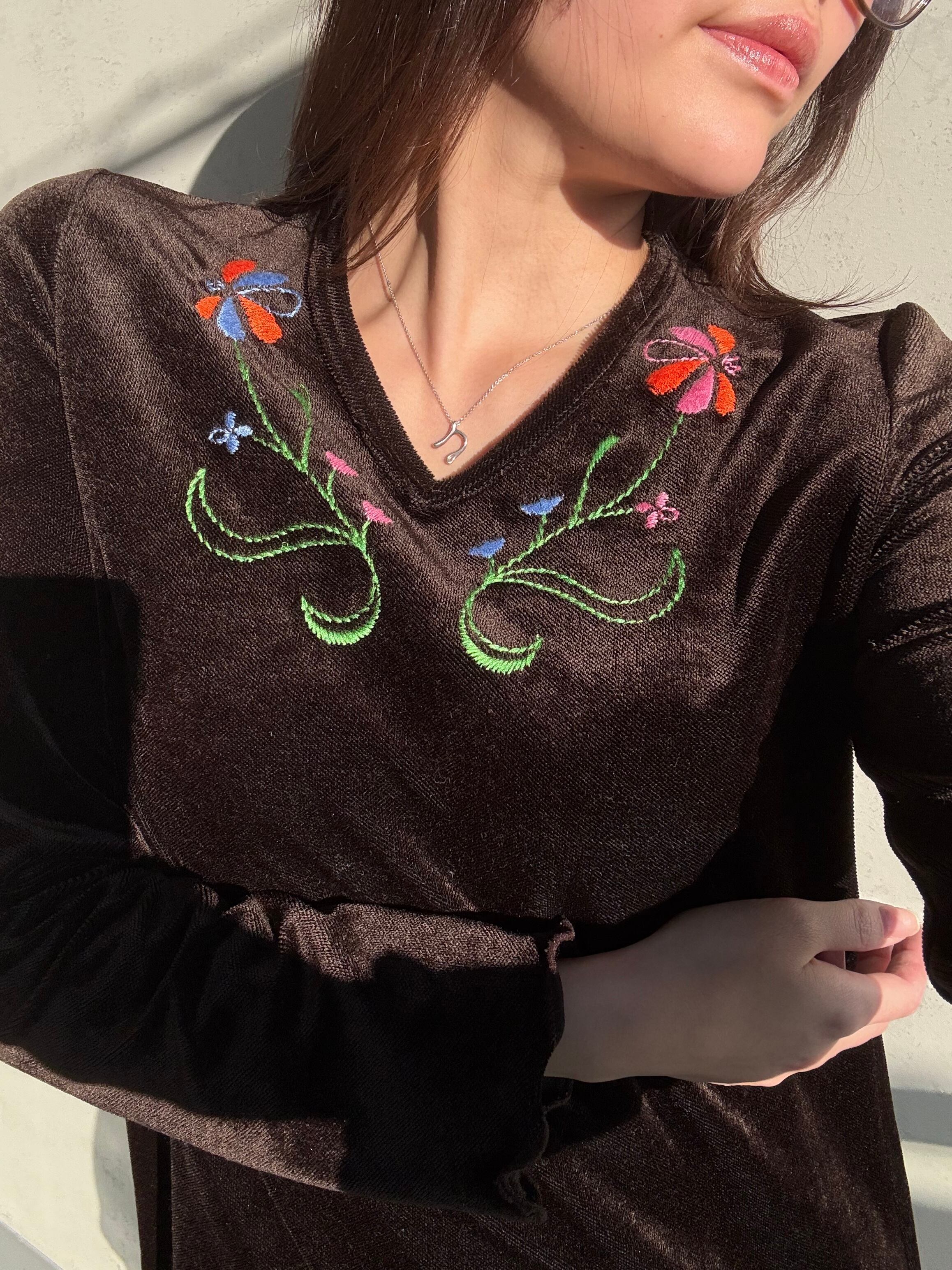お花の刺繍が施されていて、華やかさを演出していますよ〜 袖や裾のヒラヒラもカワイイ✨