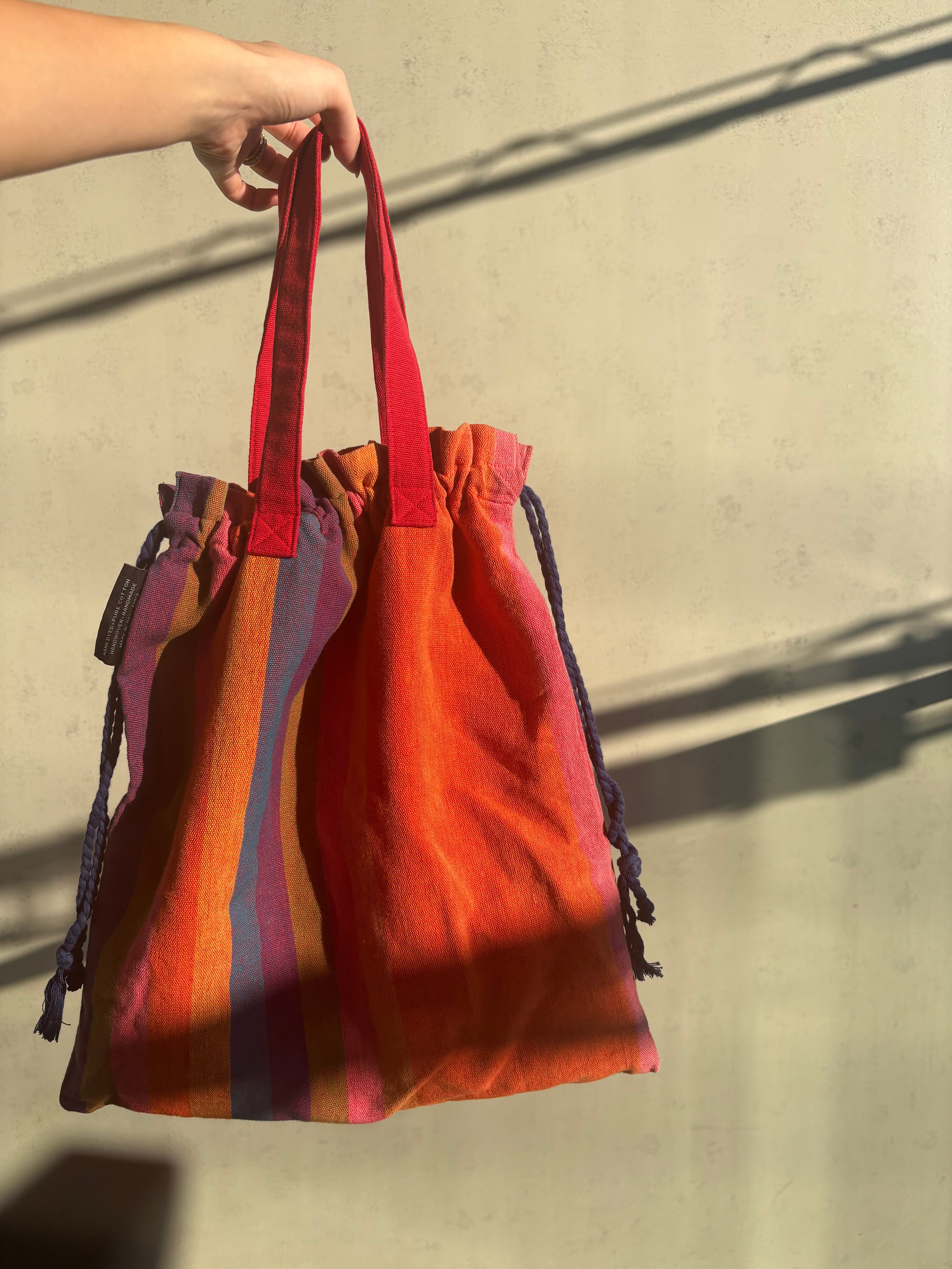 巾着袋のように絞って使えるトートバッグ✨