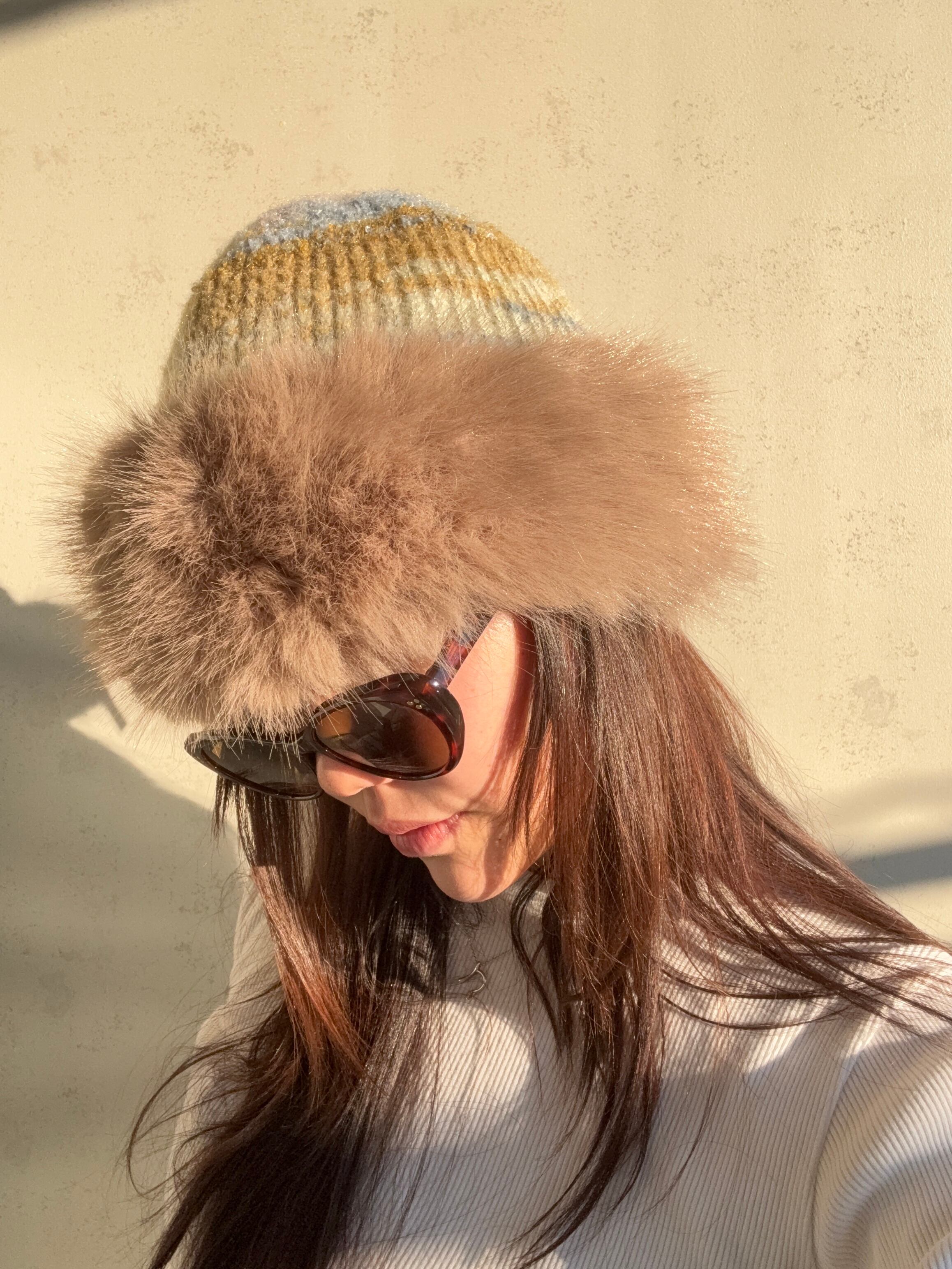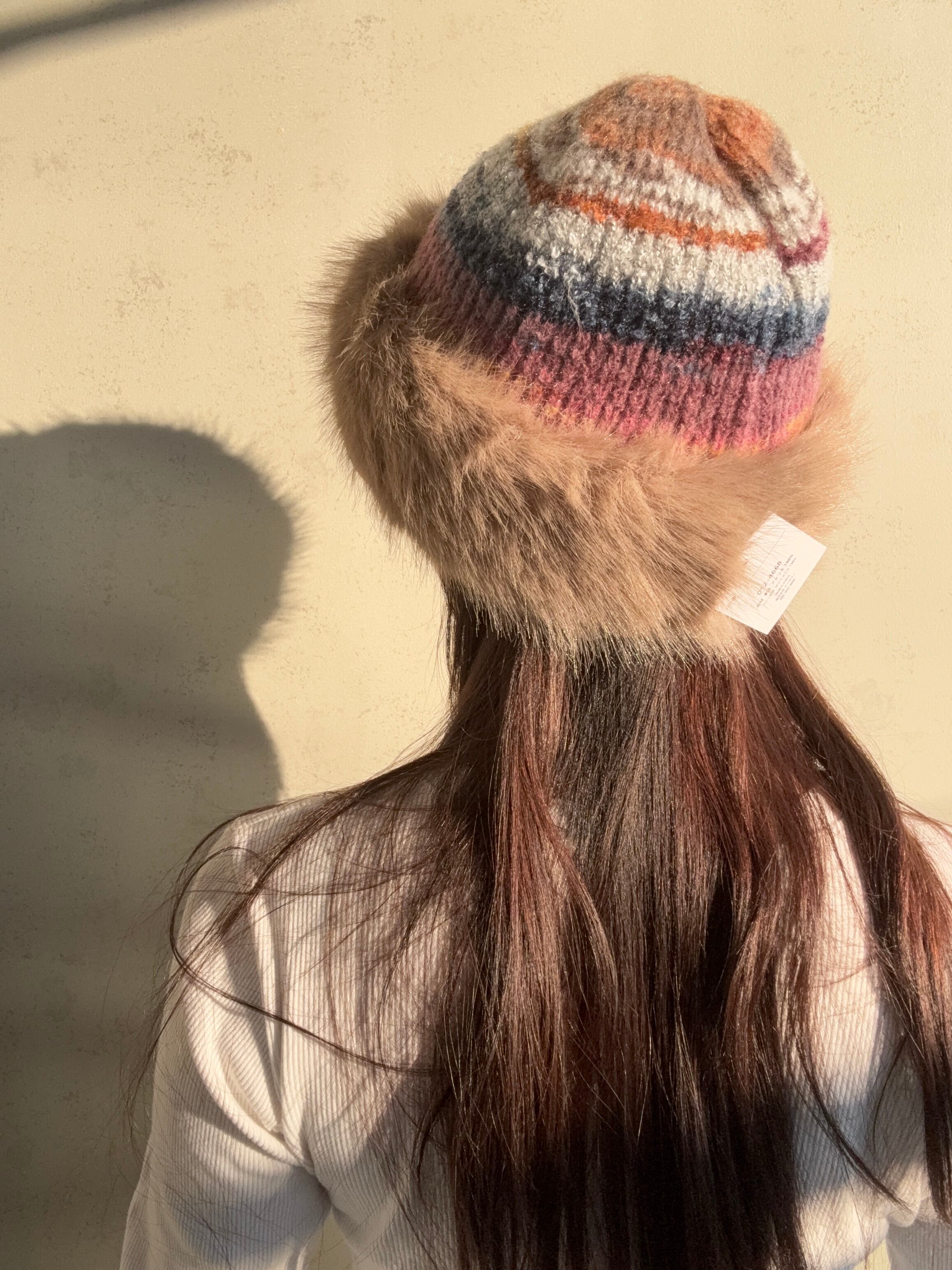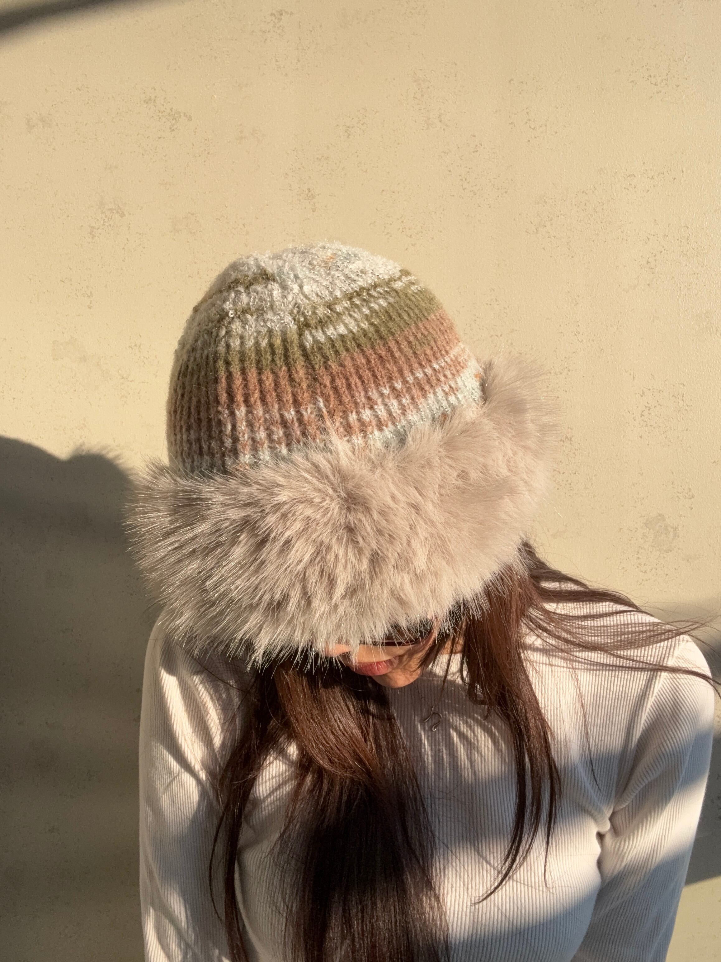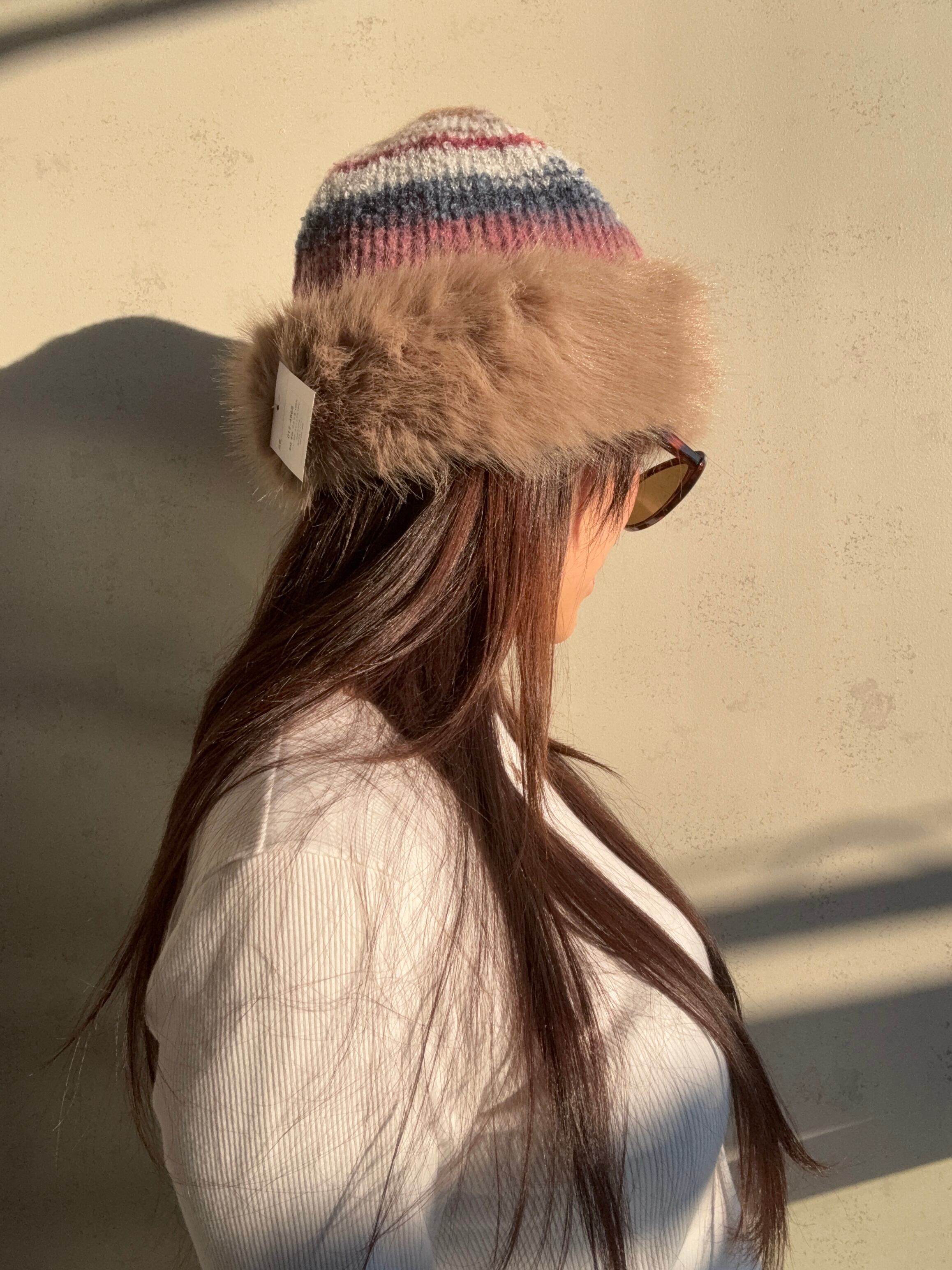 もふもふのファーとカラフルなニットがかわいいハットです❤️