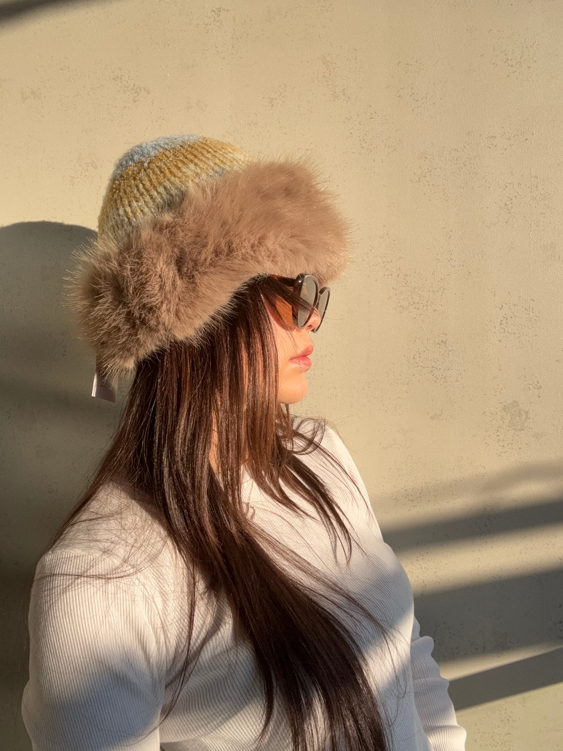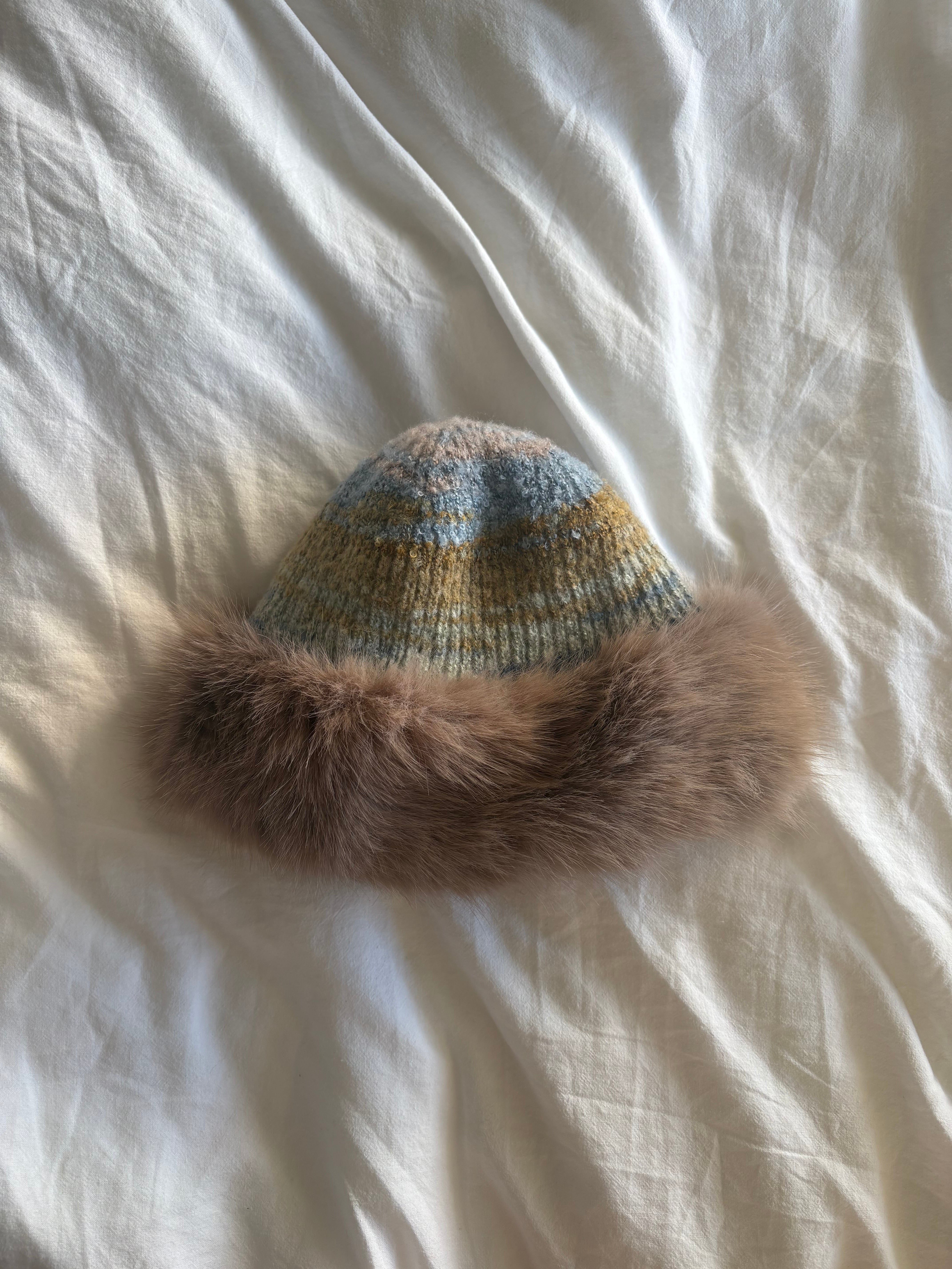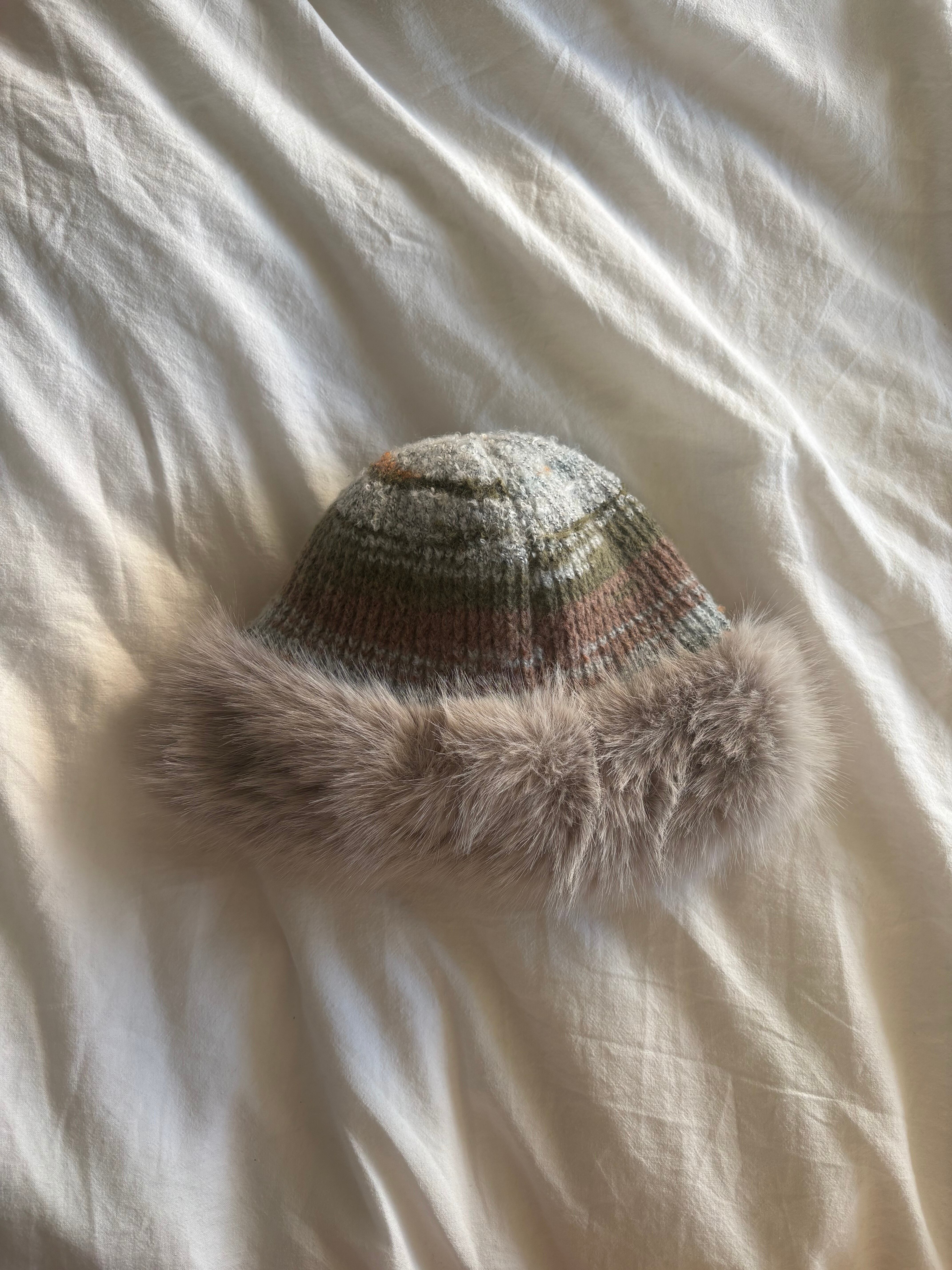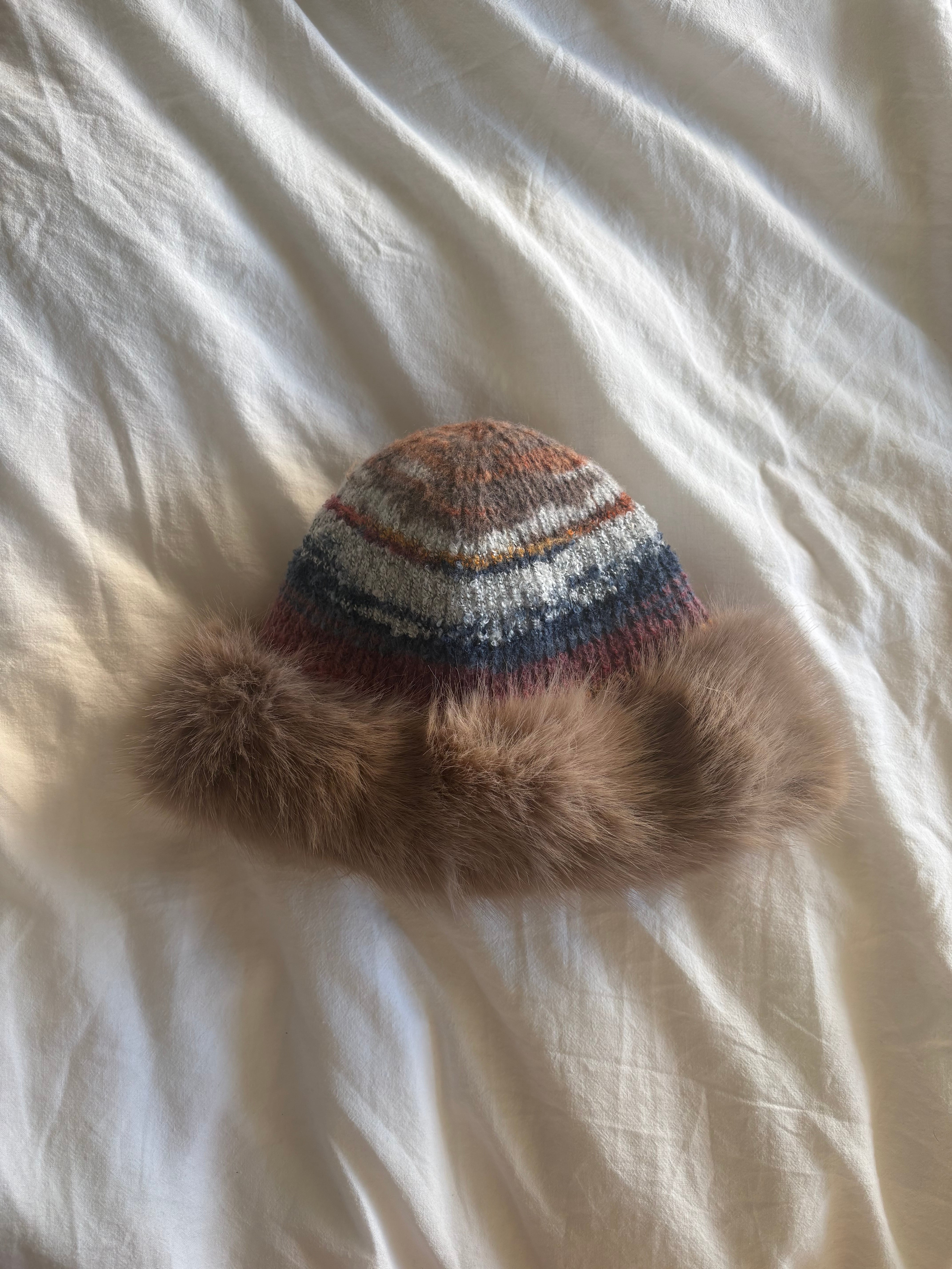 もふもふのファーとカラフルなニットがかわいいハットです❤️