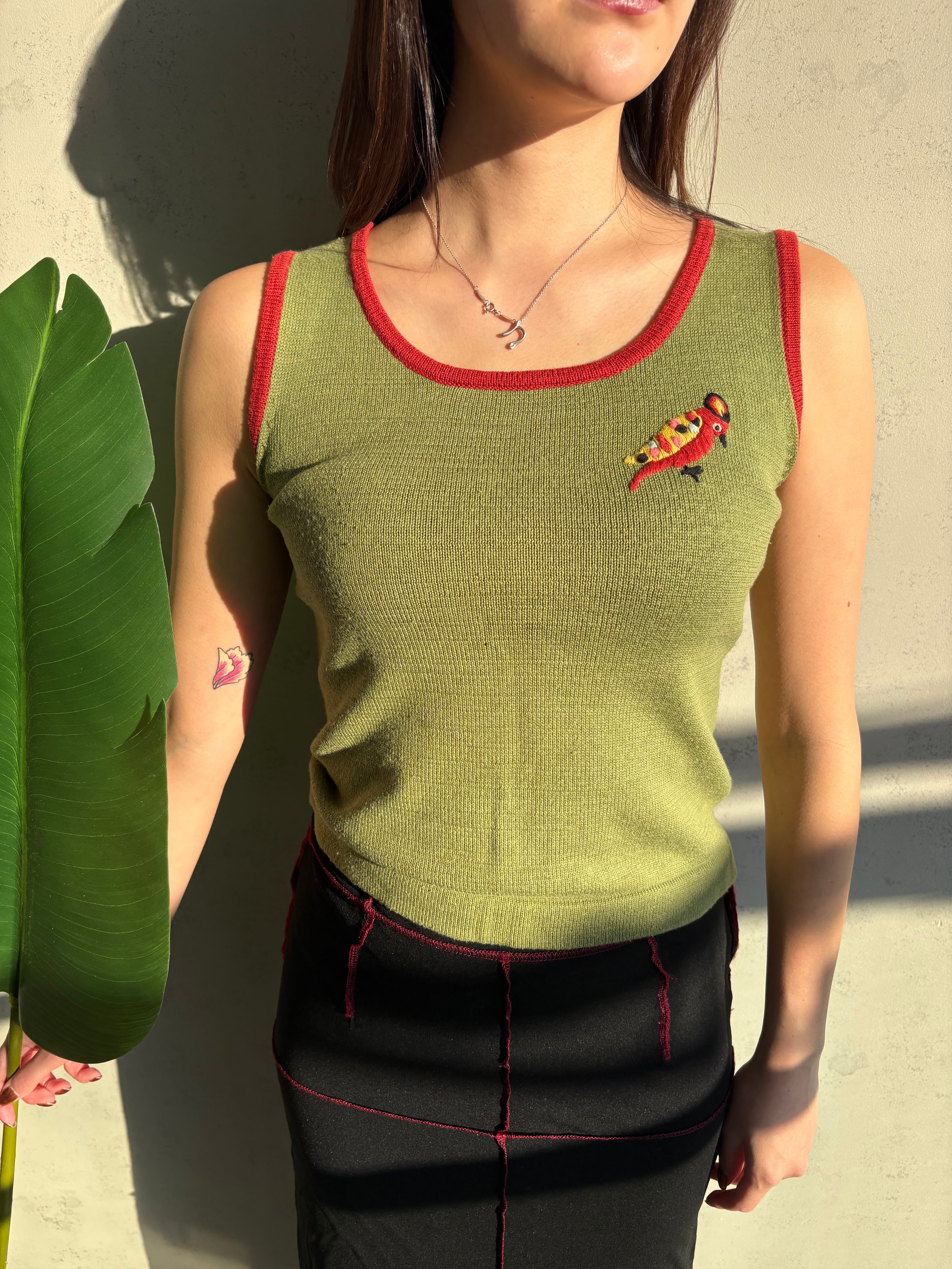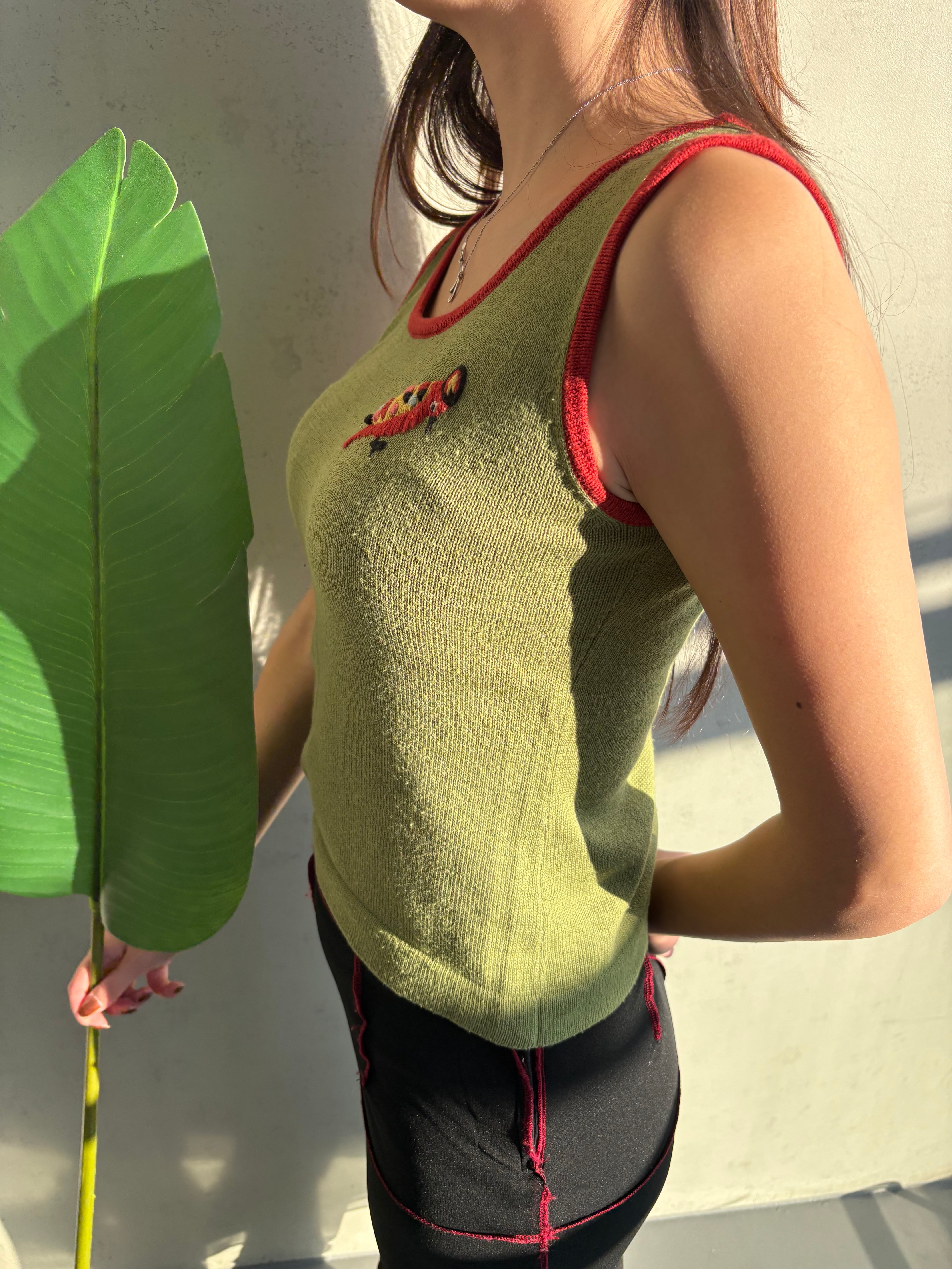 鳥さんの刺繍がポイントのタンクトップです✨