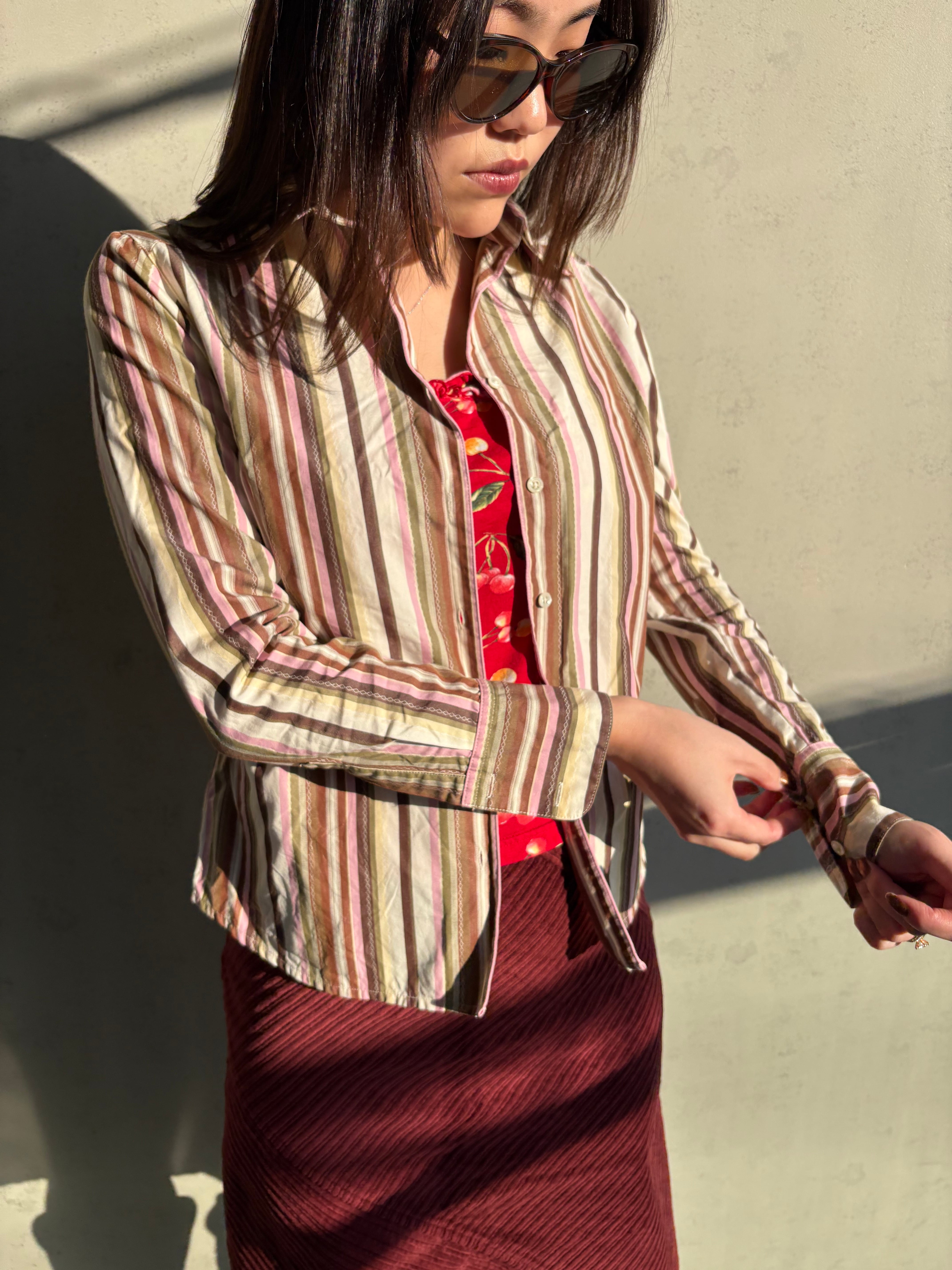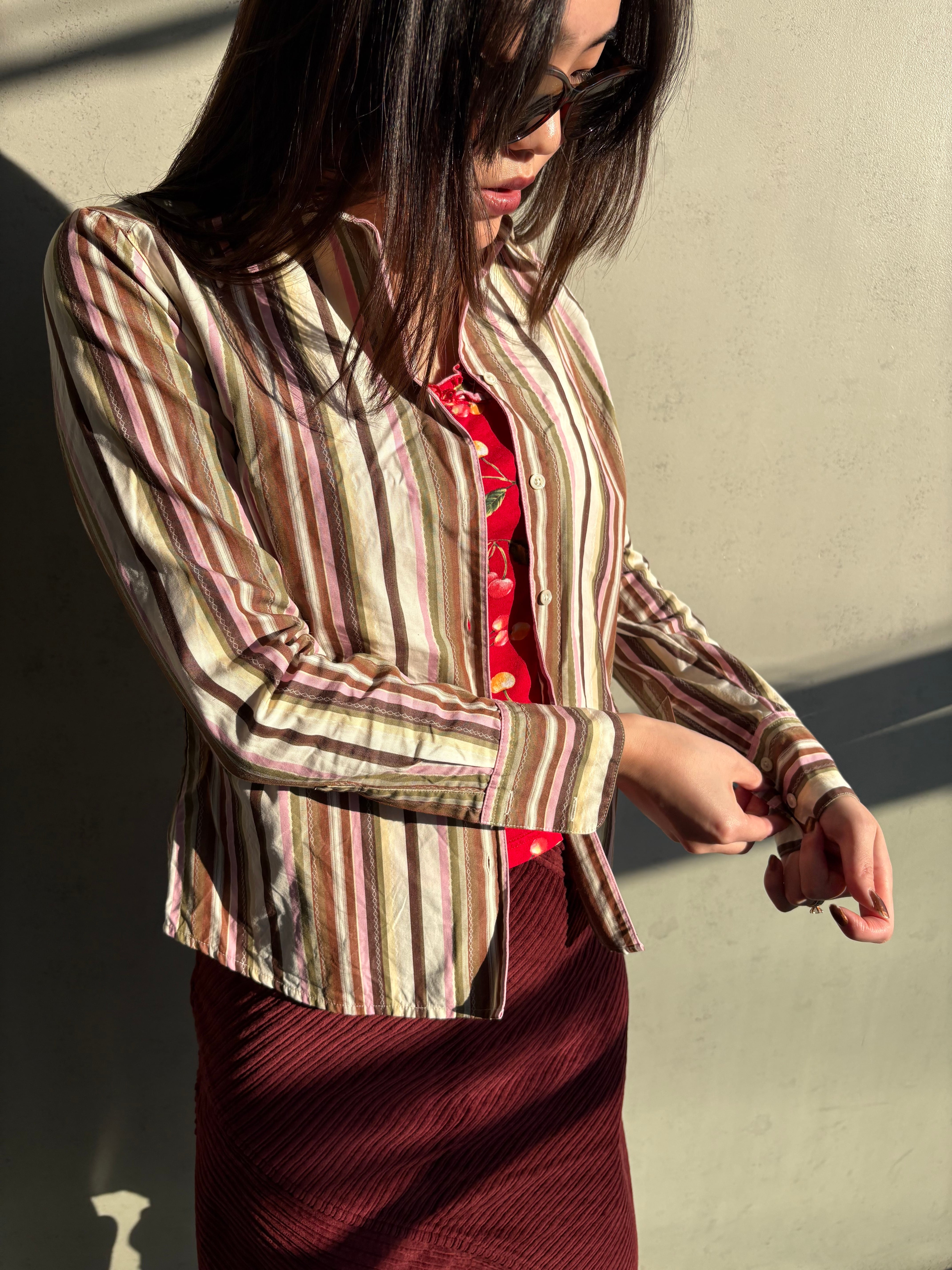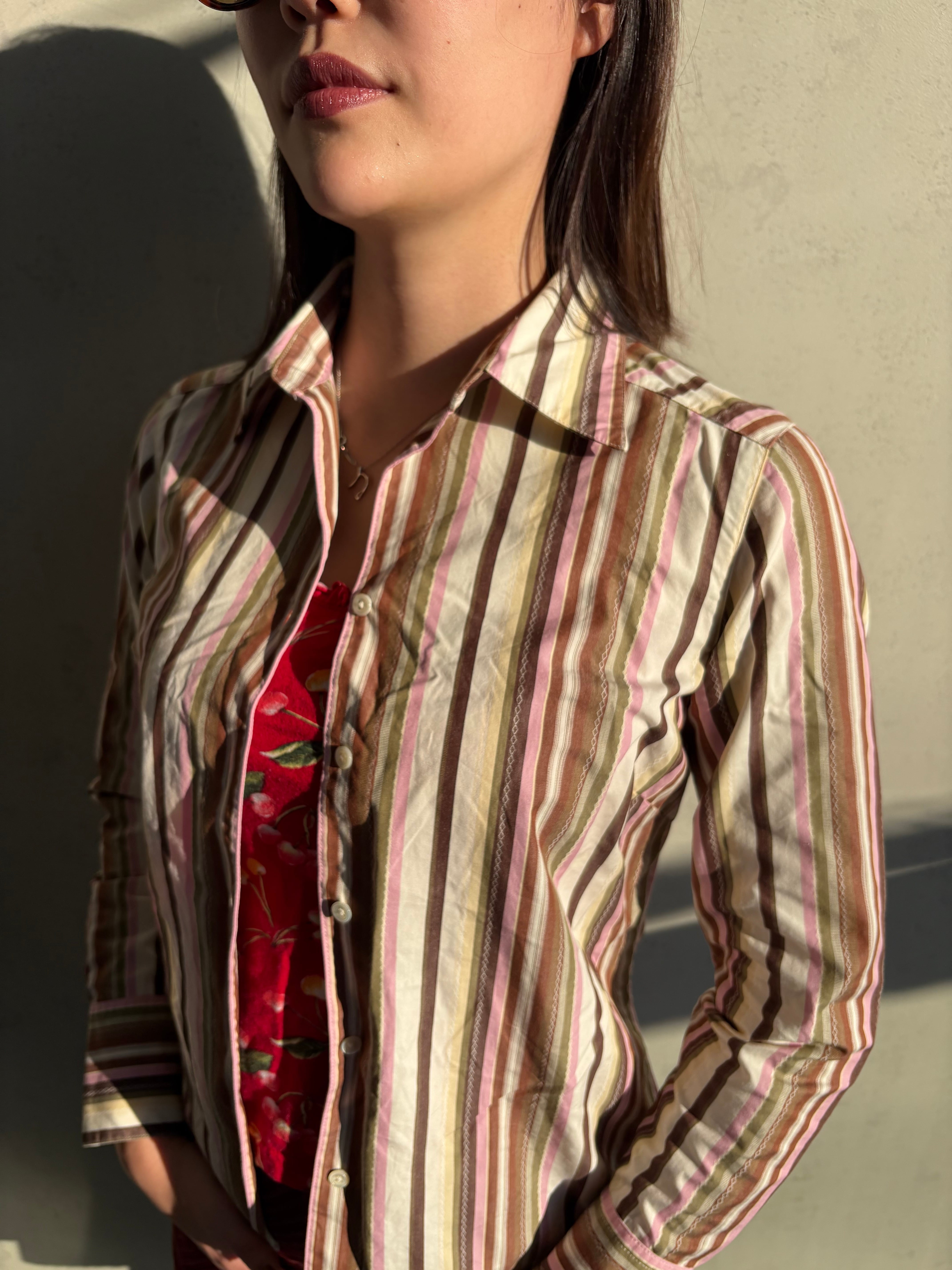 ピンクとブラウン色合いが素敵なシャツ〜!!