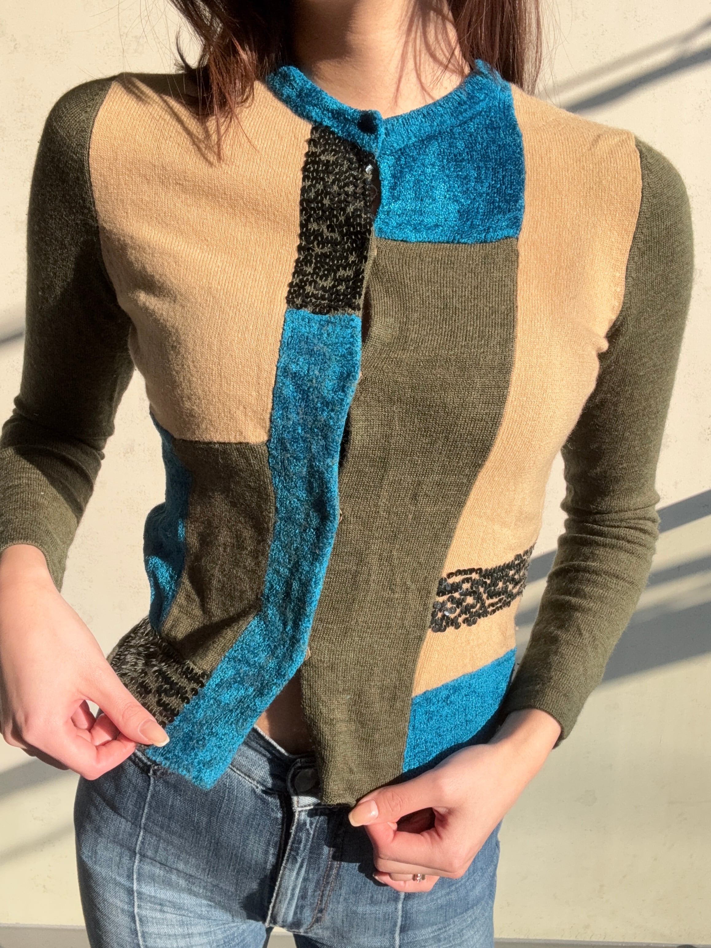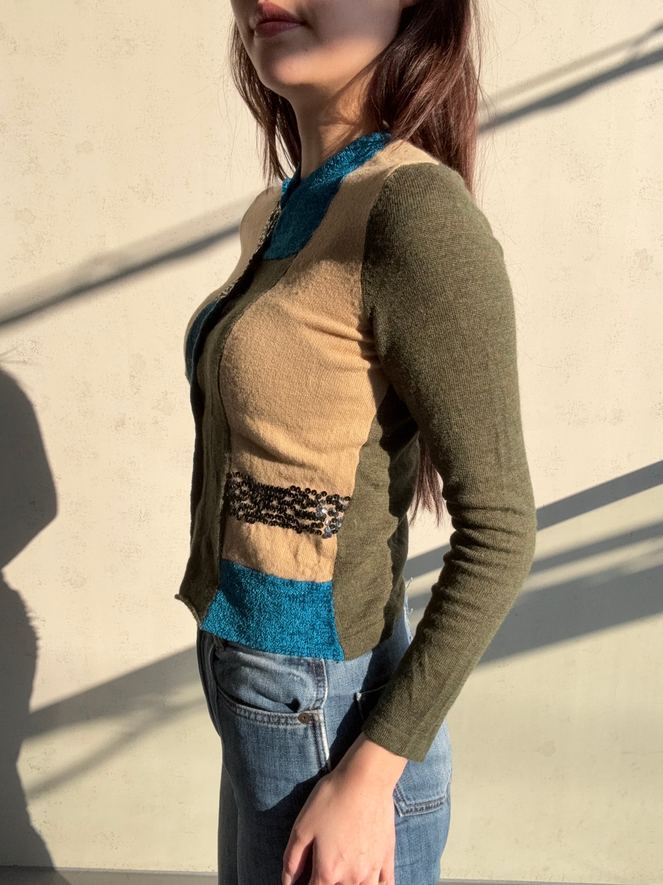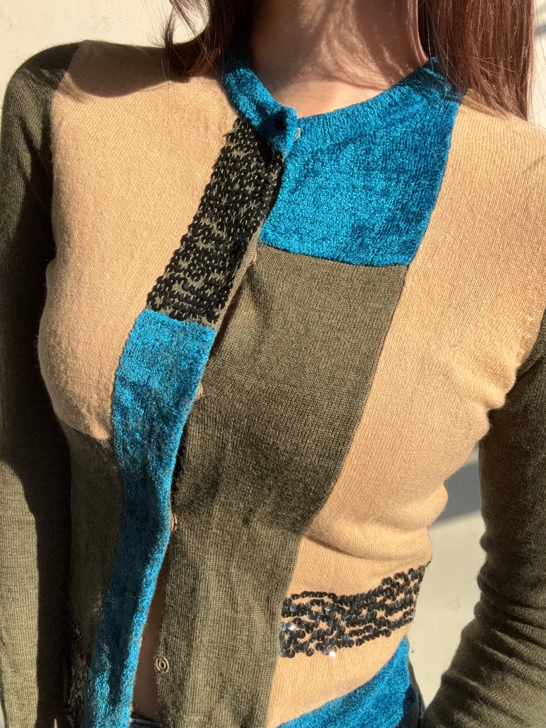 スパンコールのアクセントが魅力的な異素材カーディガンが新たにラインナップ♪