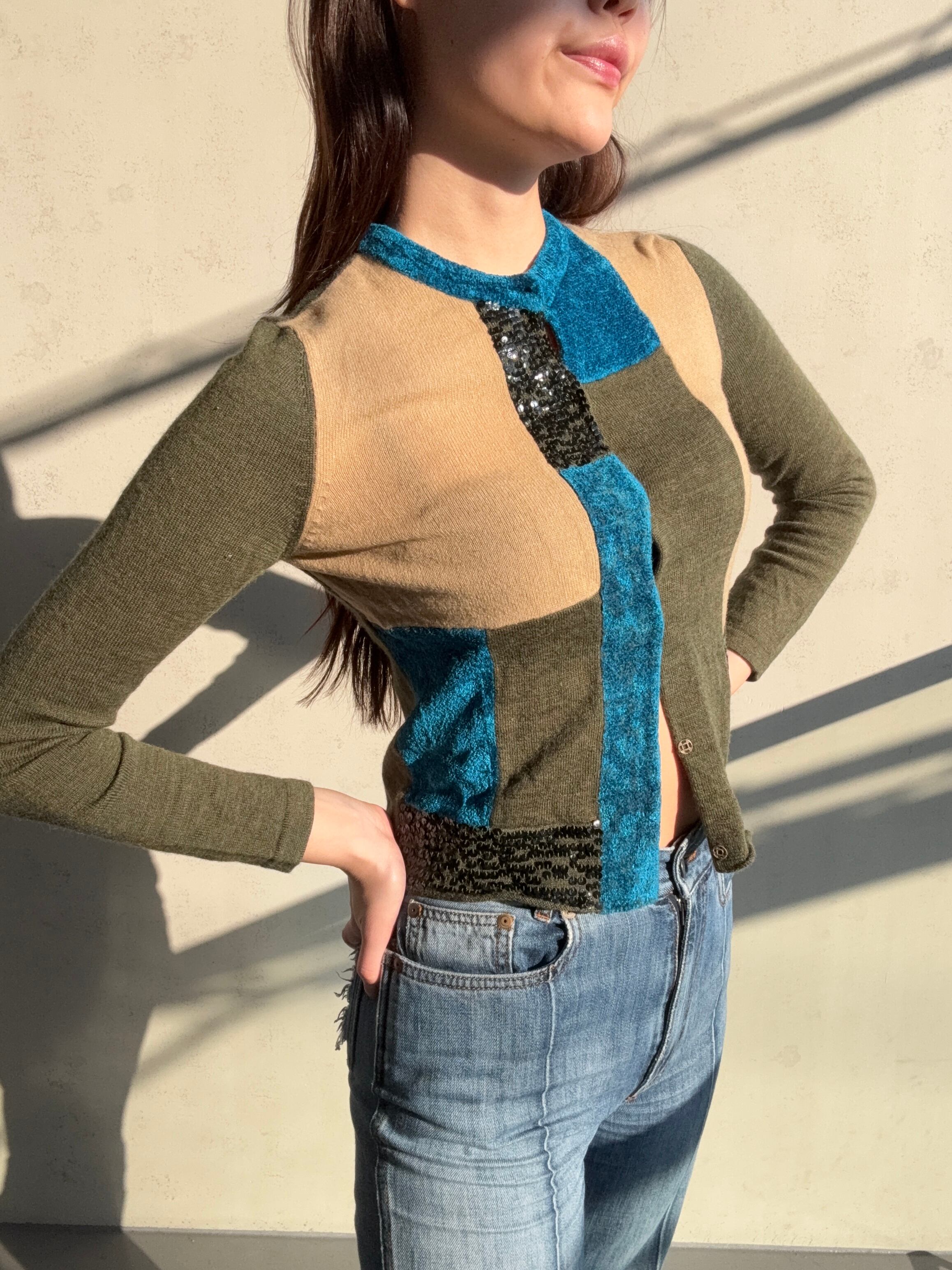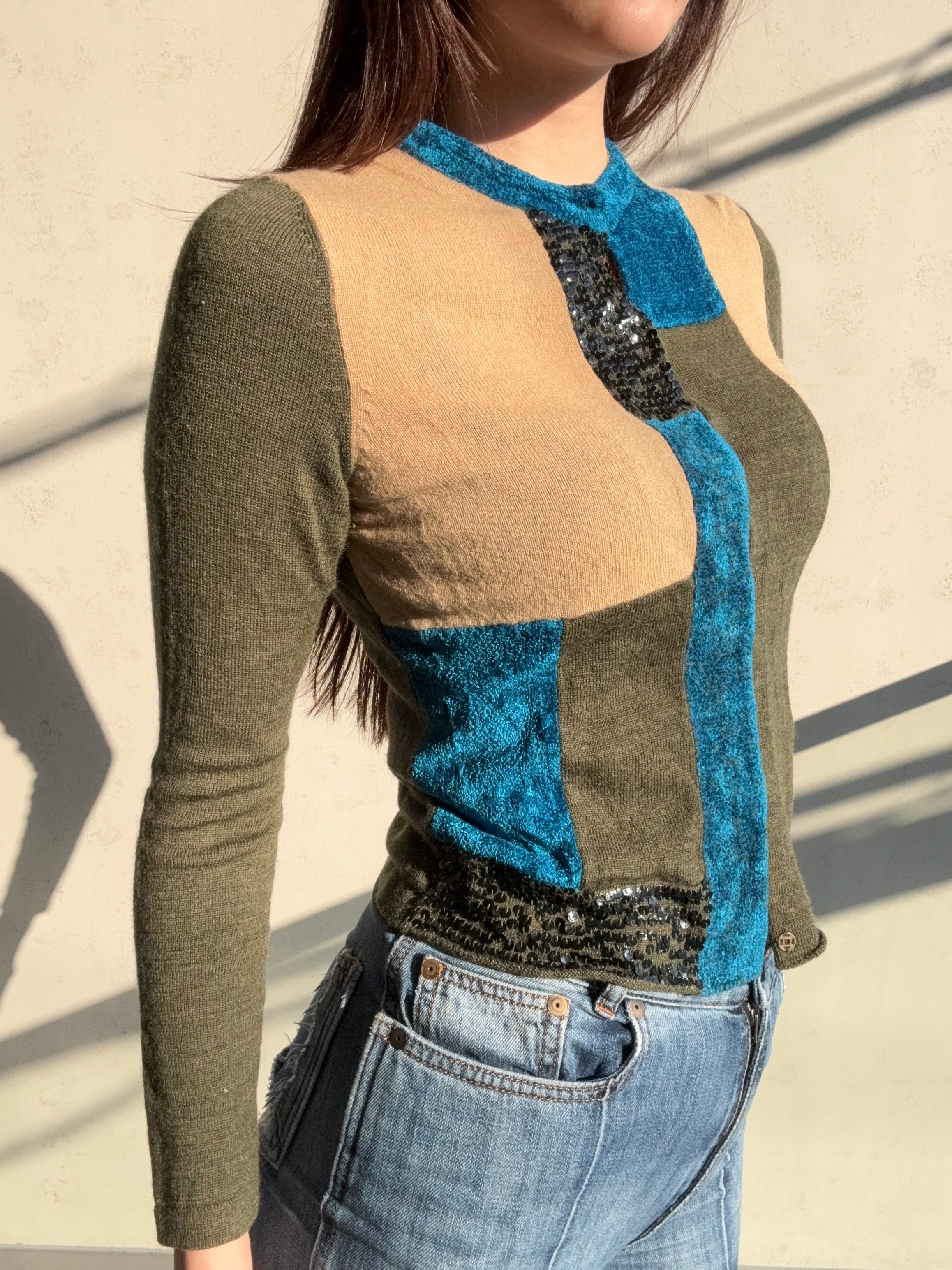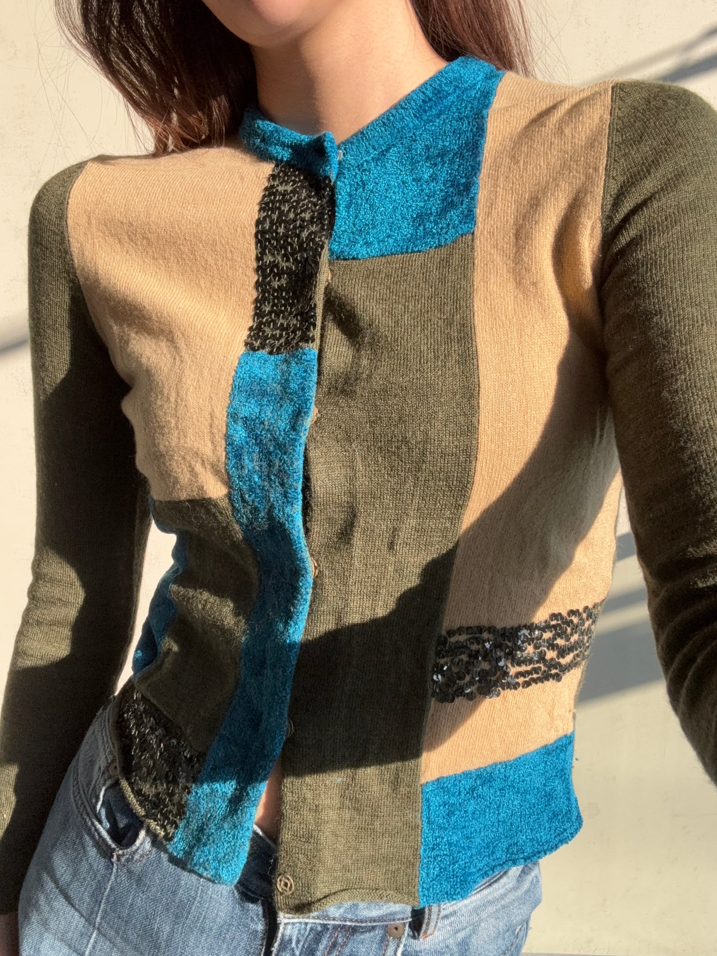 スパンコールのアクセントが魅力的な異素材カーディガンが新たにラインナップ♪