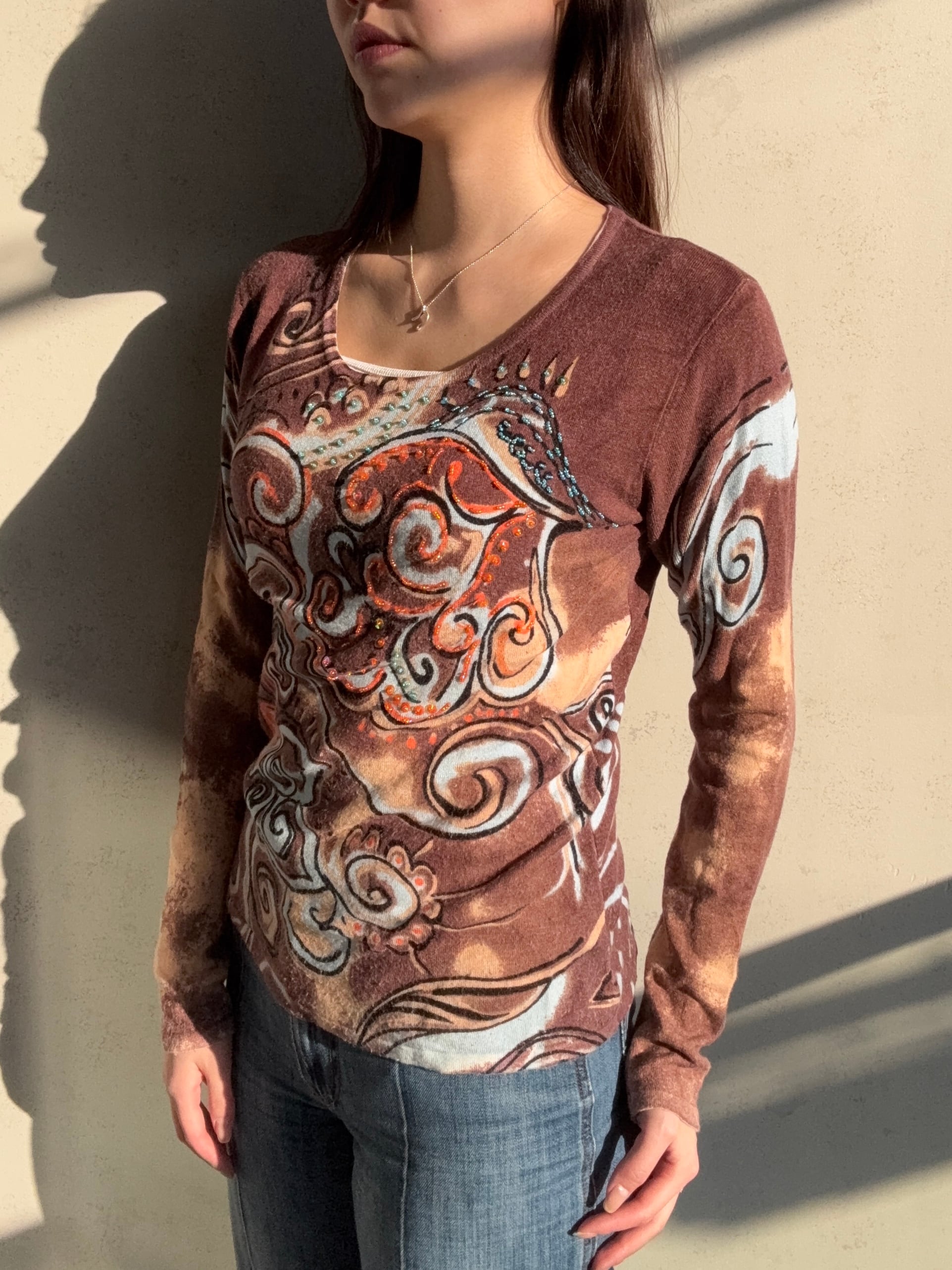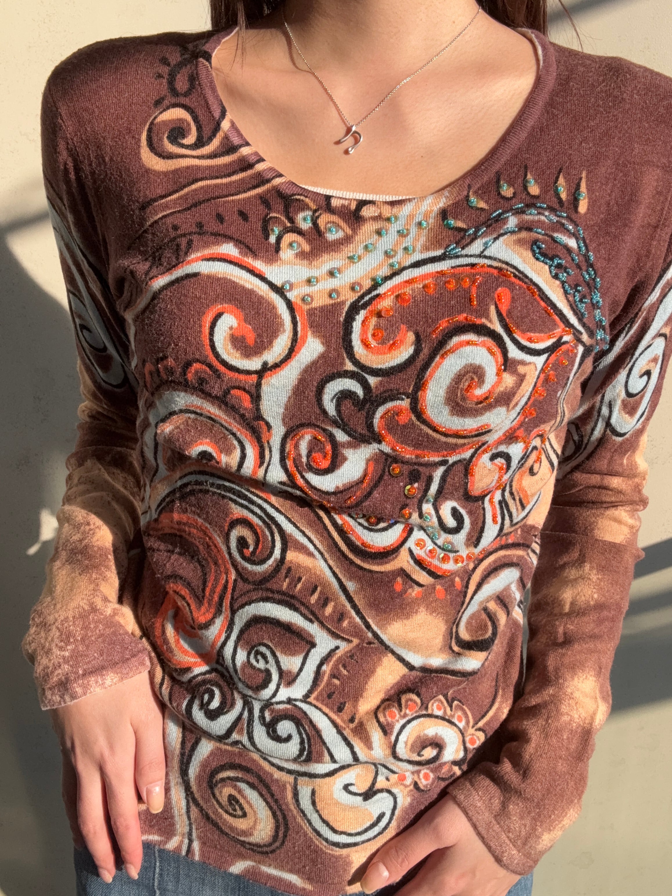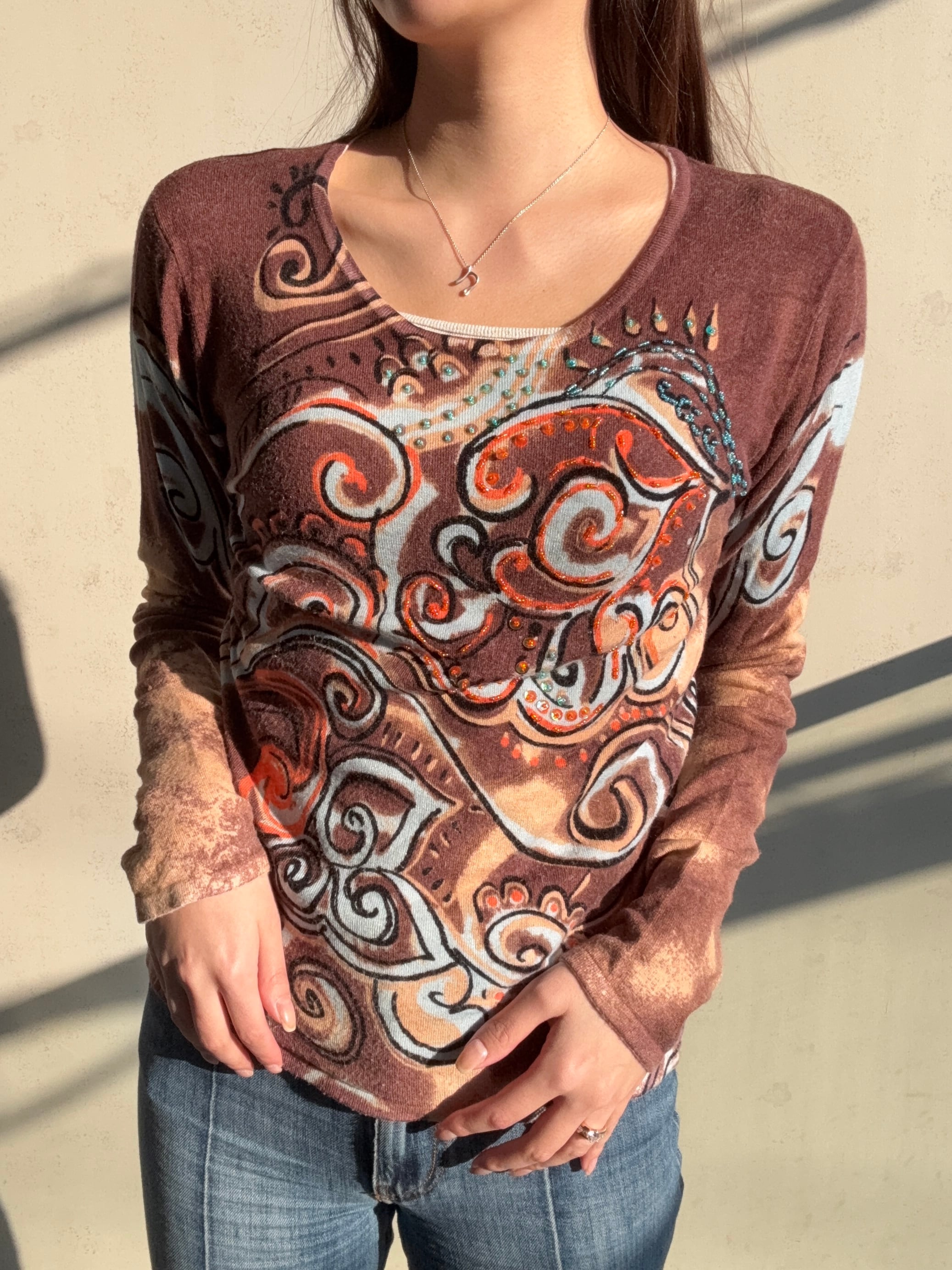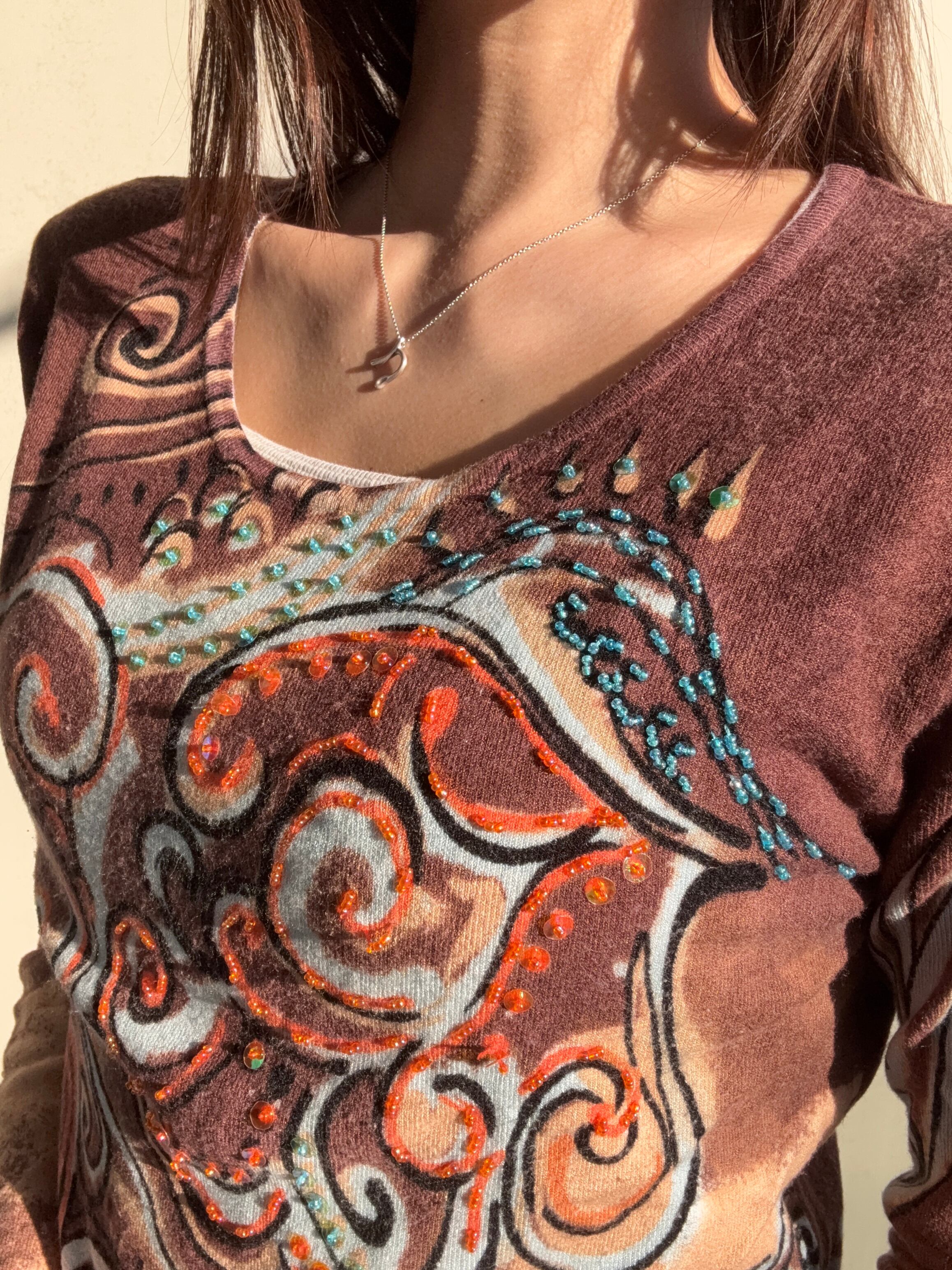 総柄デザインが特徴的なseñorita knit が登場です♪ 異国の風情を感じさせるアートのようなデザインが、どんなスタイルにもマッチしておしゃれ度を引き立てます✨ ビーズも贅沢についていますよ