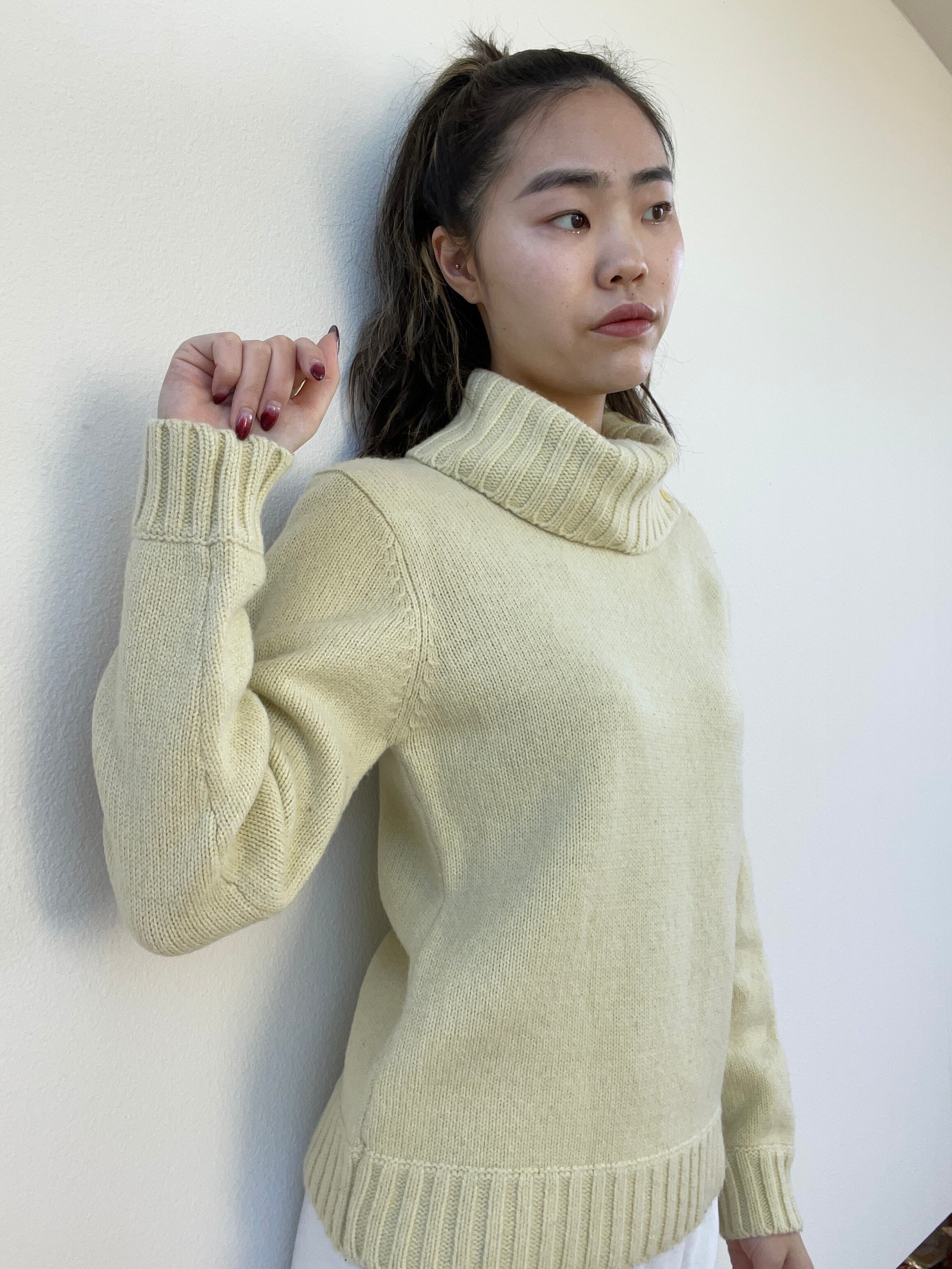 ニットの色もレモンイエローのようなライムのような淡〜いカラーが素敵です