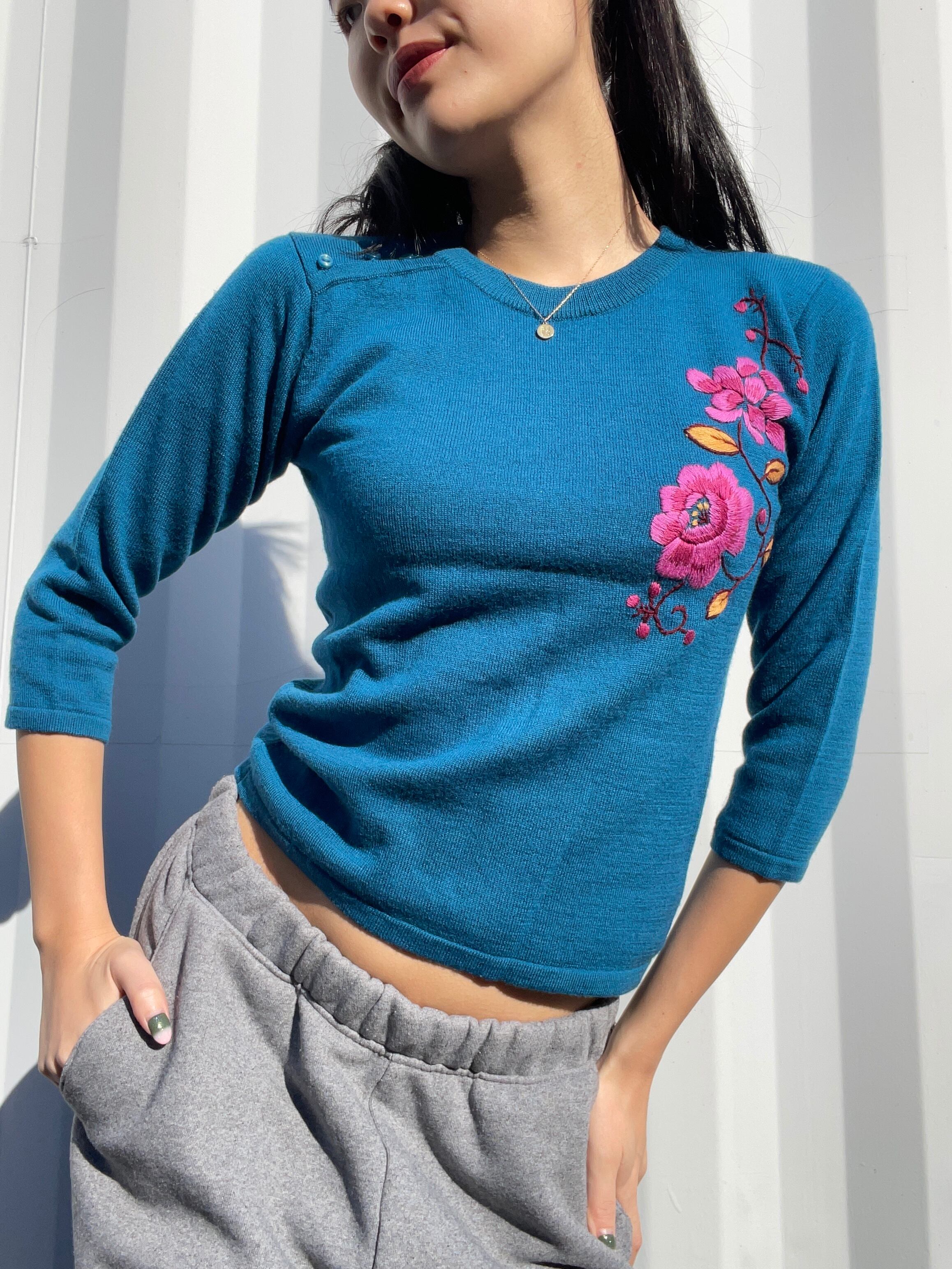 鮮やかなブルーにピンクのお花が素敵でしょ❤️