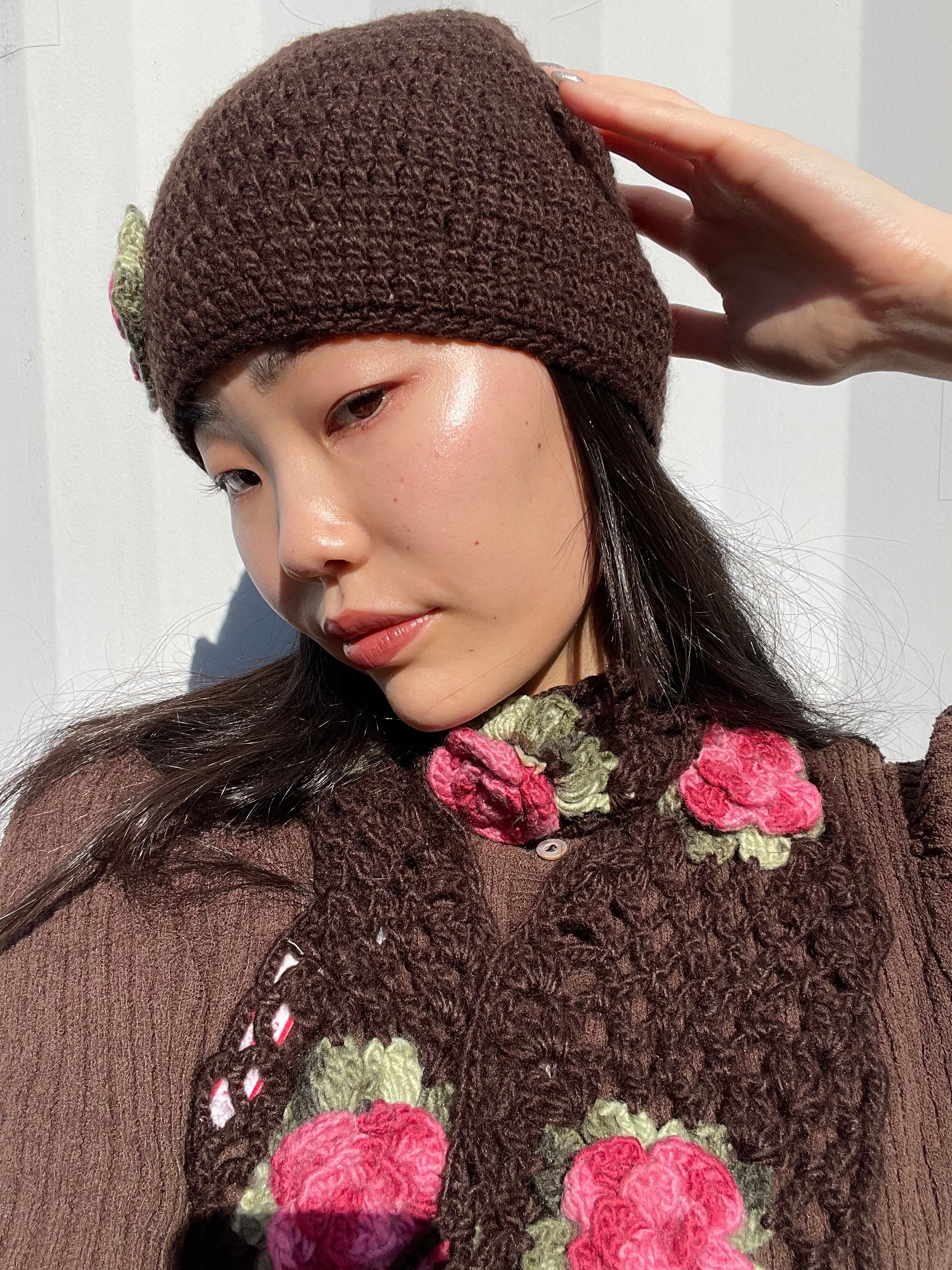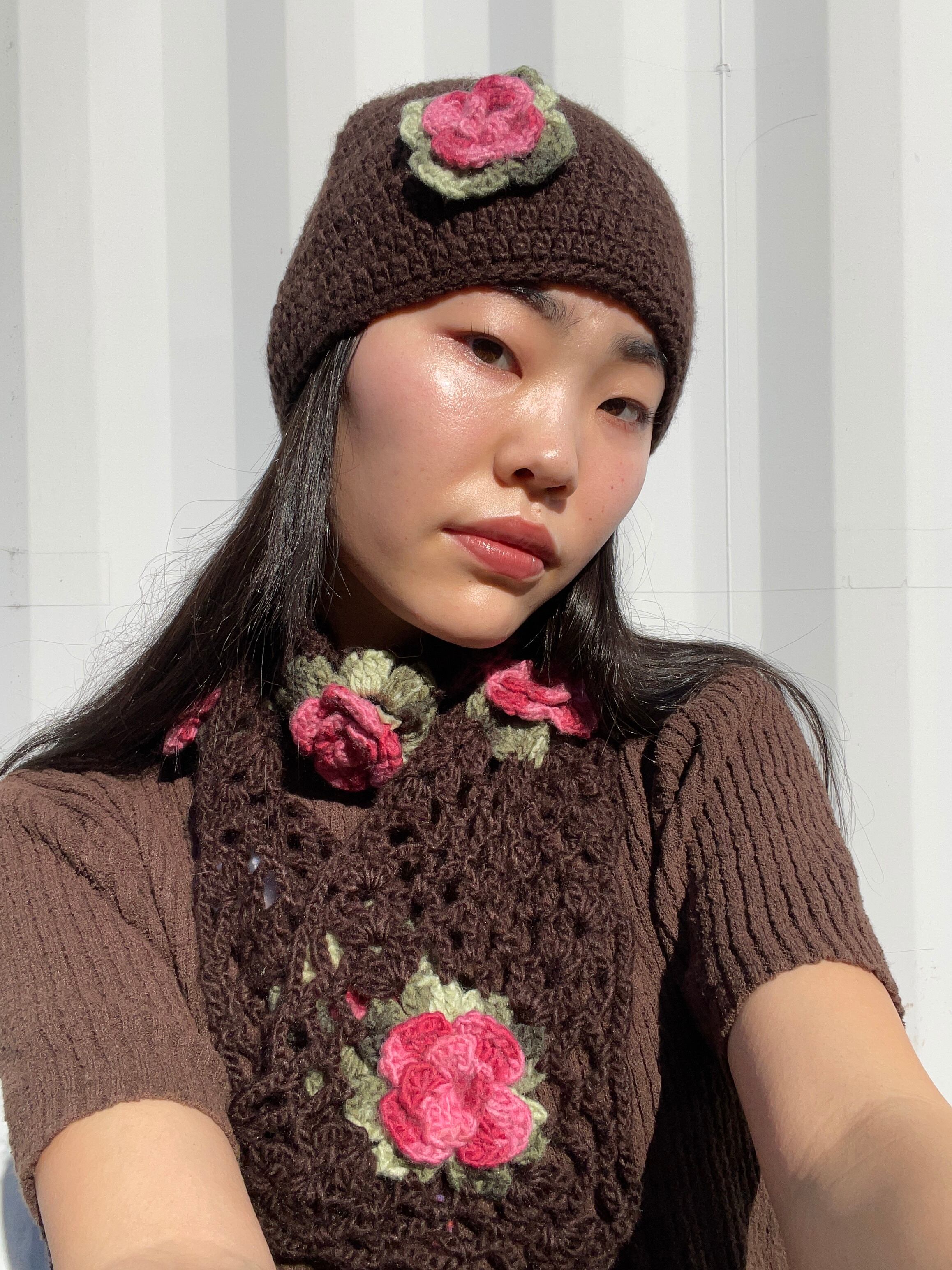 かわいいバラ付きの帽子とマフラーのセットだよ❤️❤️❤️