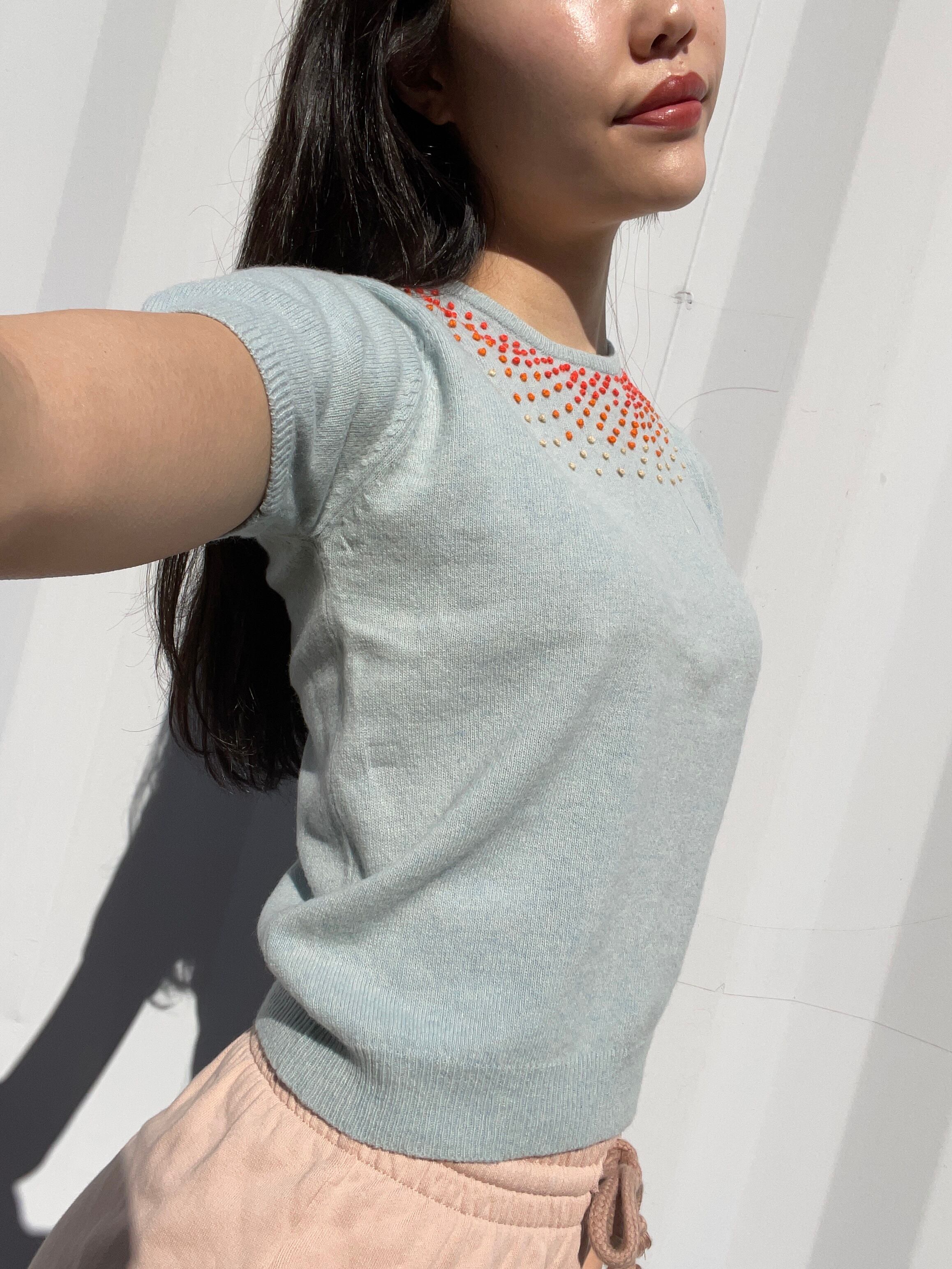 淡いブルーグレーと真っ黄色のレースグローブの相性が大好きです!ぜひセットでゲットしてね♪