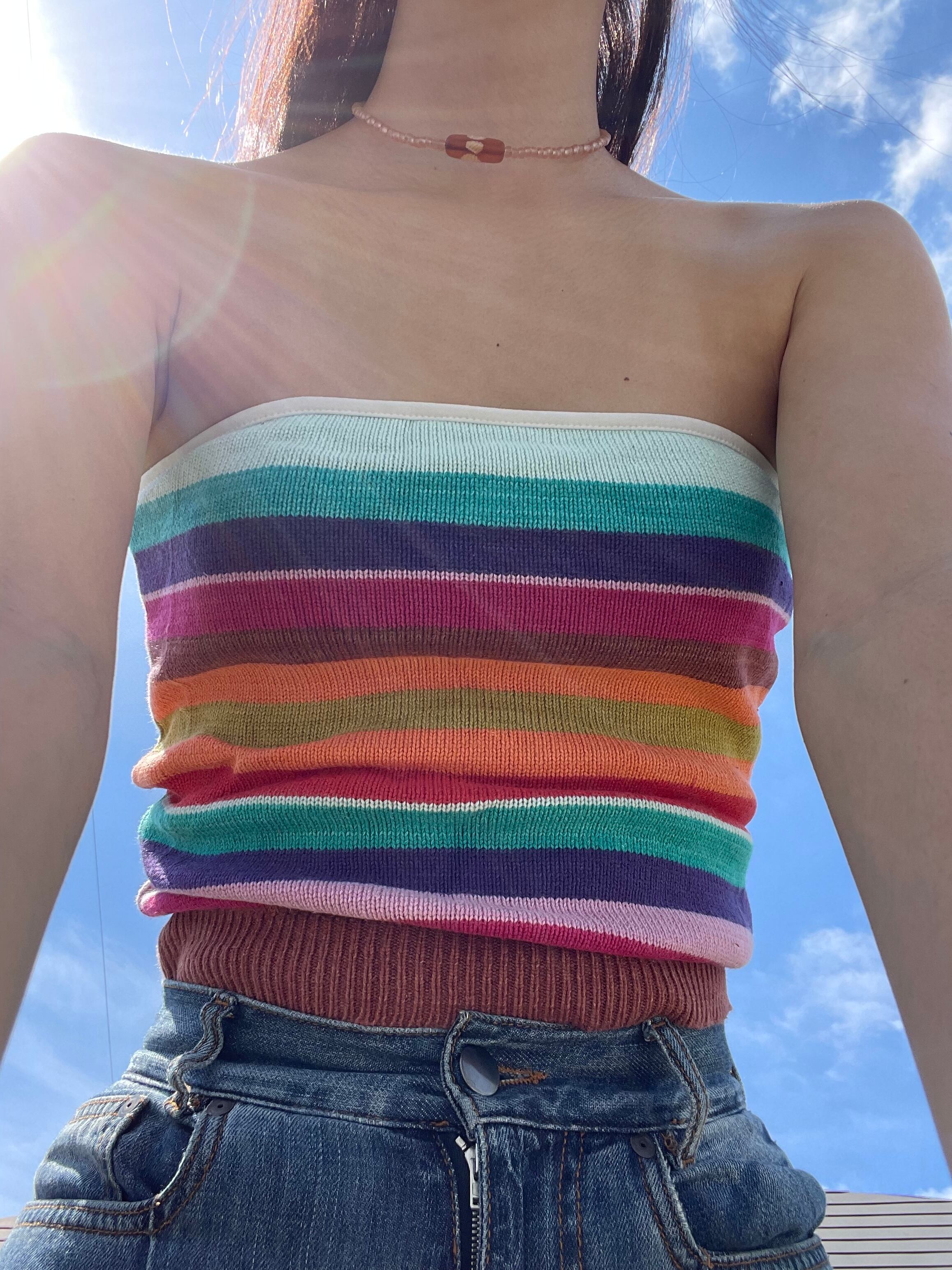 肩からスッと入れるだけで、即座にフェスティバルやビーチなどのイメージを思い浮かべますね❣️ このトップスは、柔らかく伸縮性のあるニット素材を使用しているので着心地も快適だよ〜