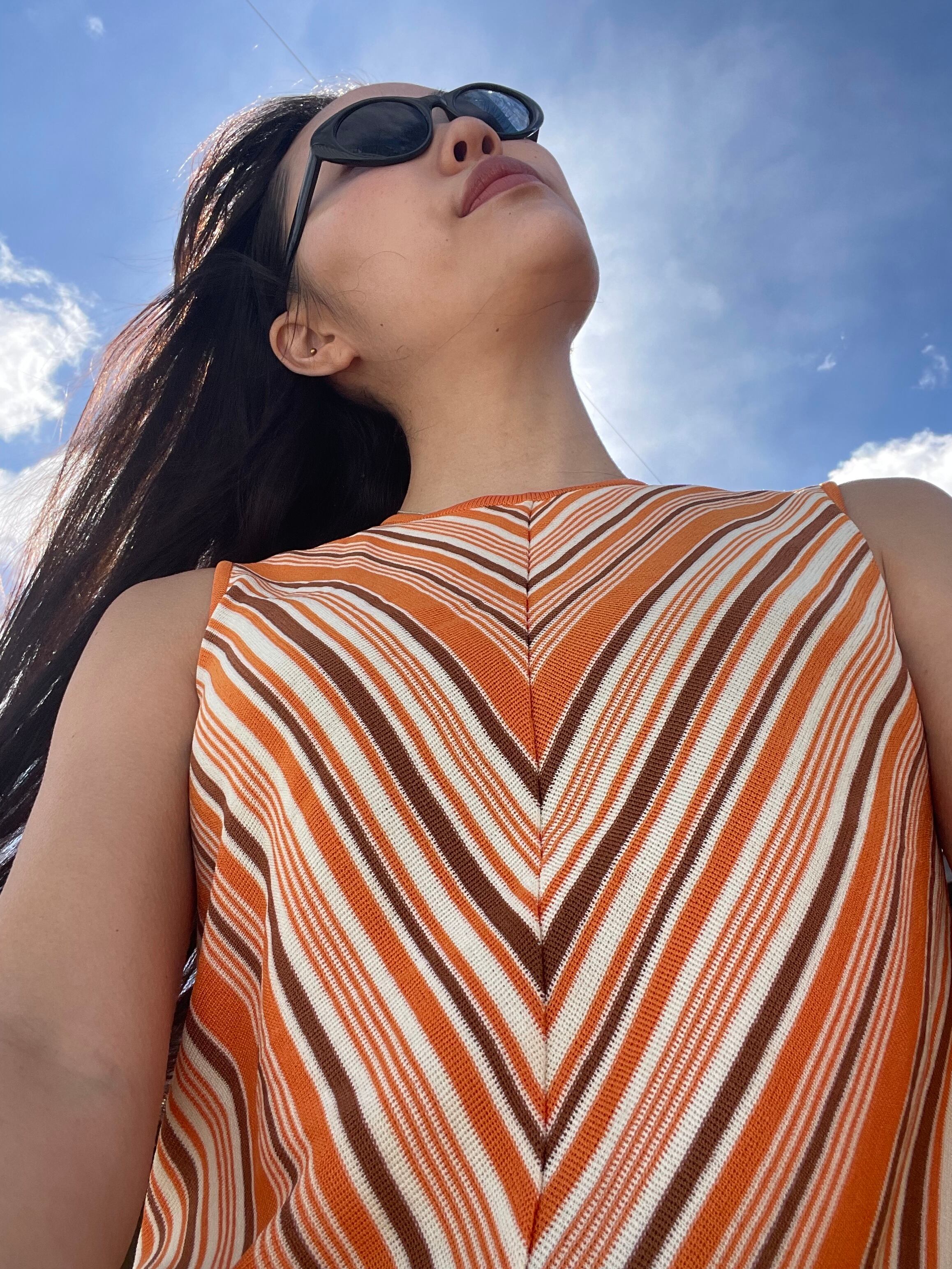 バックスタイルはオレンジ!ポチッとボタンがかわいいよ