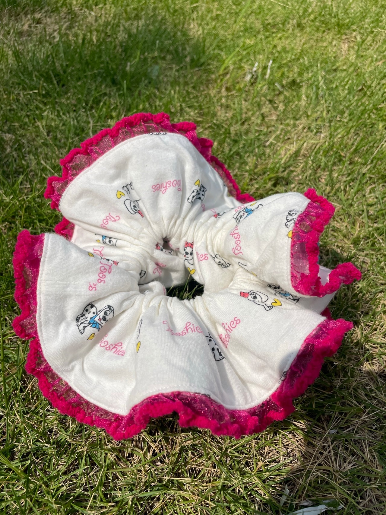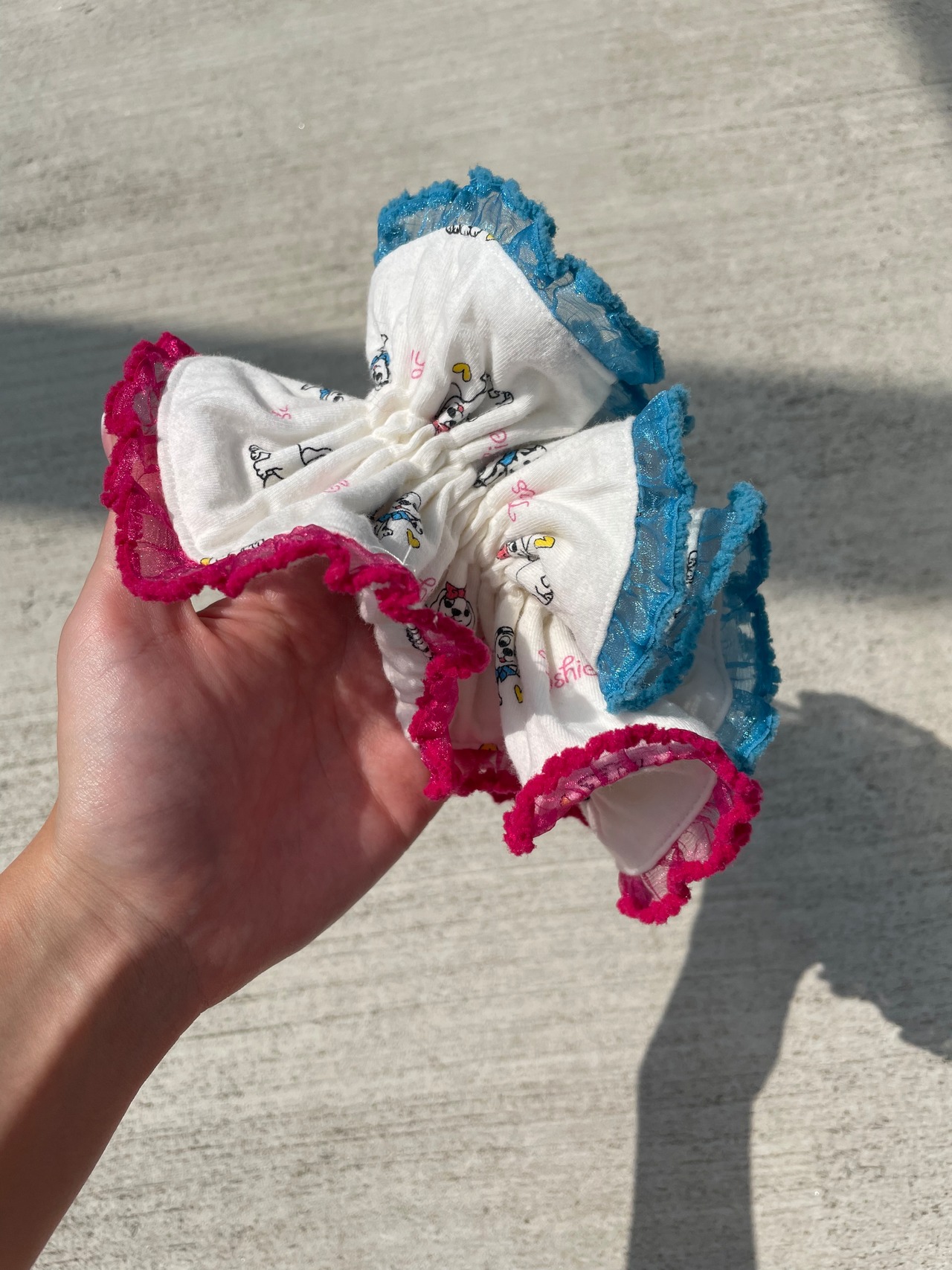 ピンクと青のフリフリが付いていて、よーく見ると✨✨✨ワンちゃんの柄になってるの〜