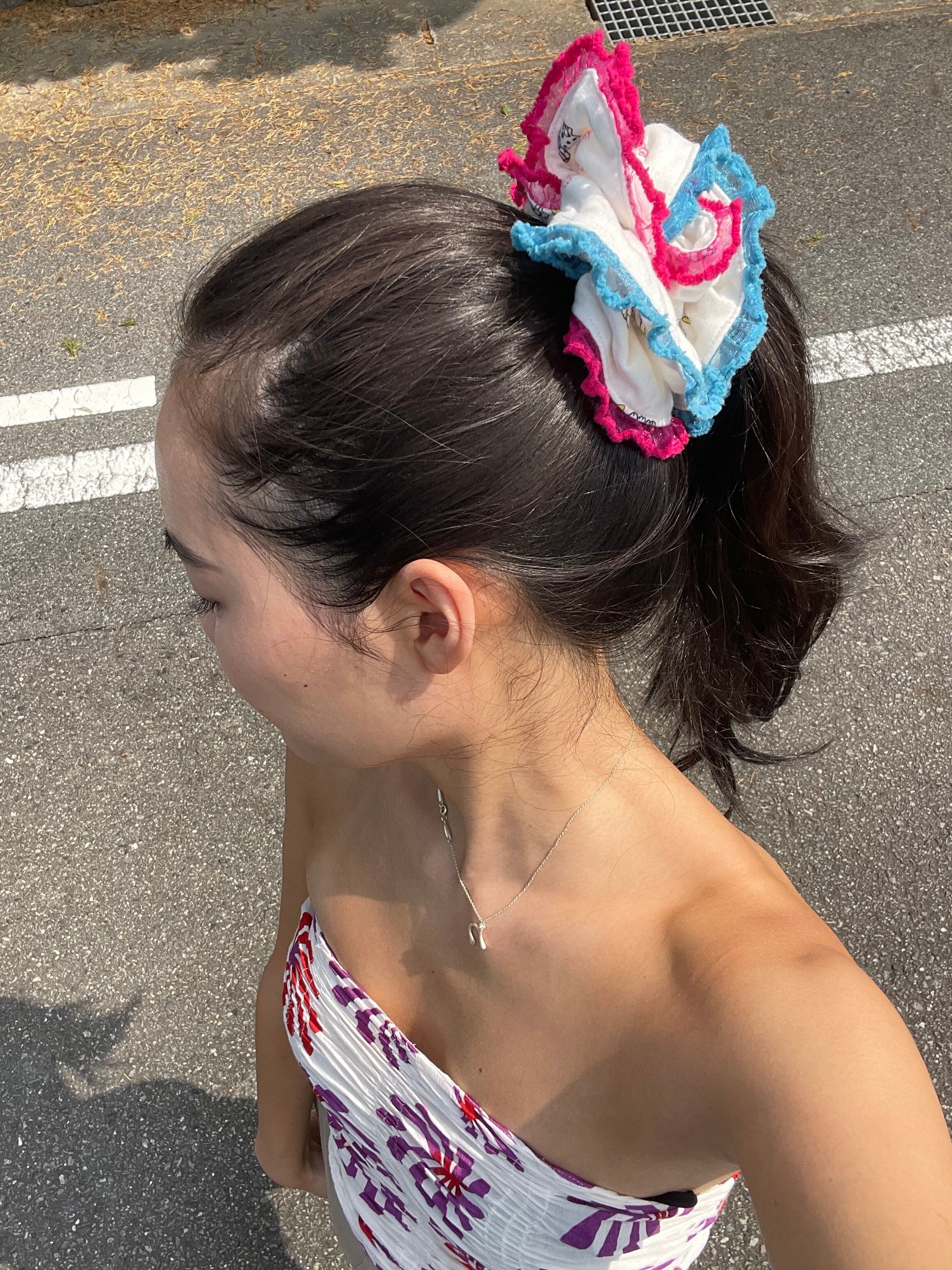 大ぶりシュシュでヘアアレンジしてもカワイイし、腕につけてファッションのポイントにも✨